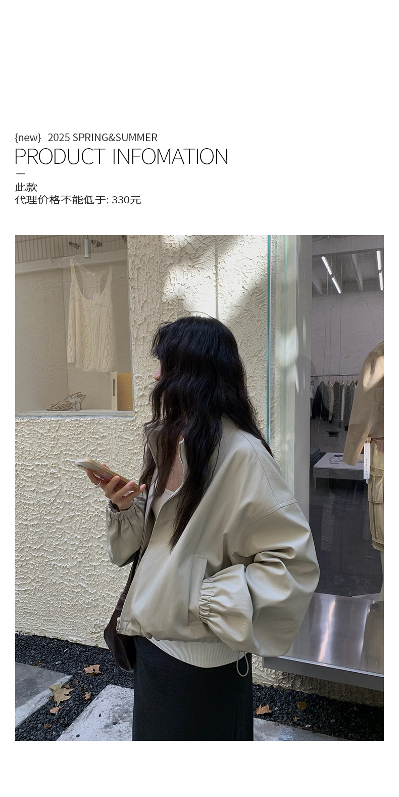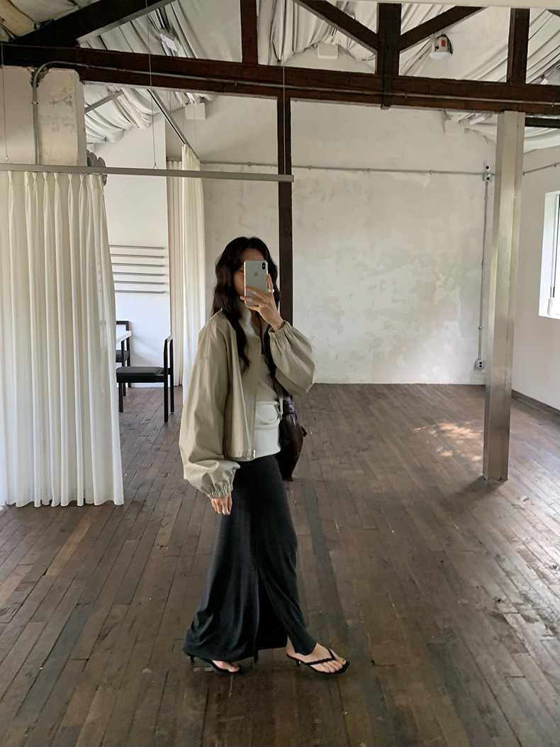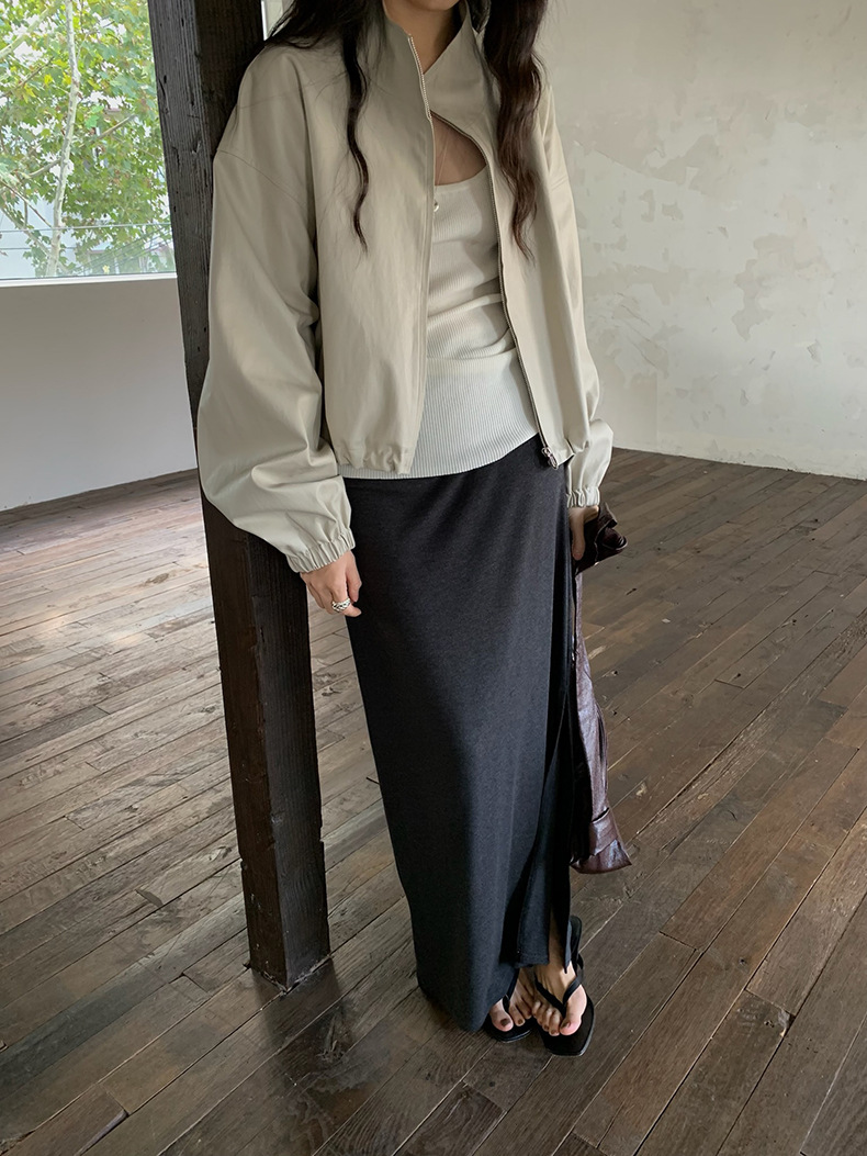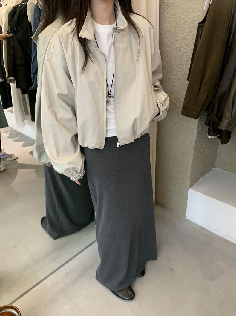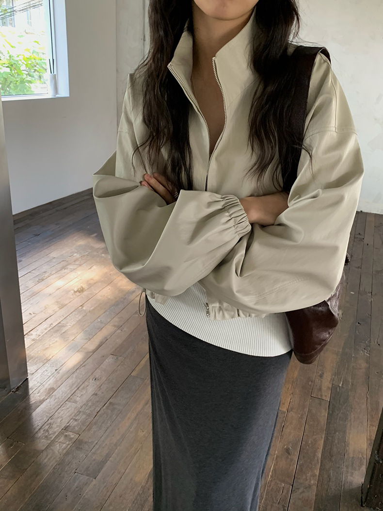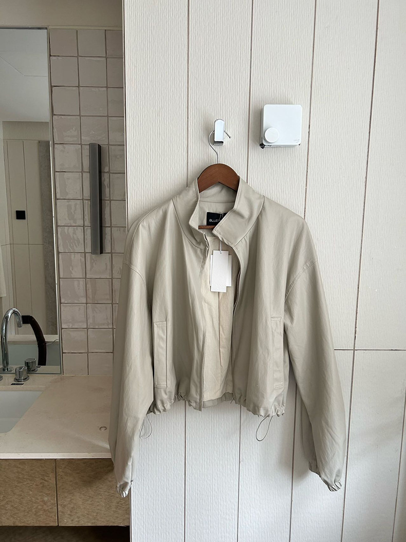 【 40% off 반품/교환 불가】캐주얼 스타일의 스탠드 칼라 지퍼 가죽 자켓, 솔리드 컬러 스탠드 칼라 루즈핏 드로스트링 여성용 아우터 WC06스토어 가기
