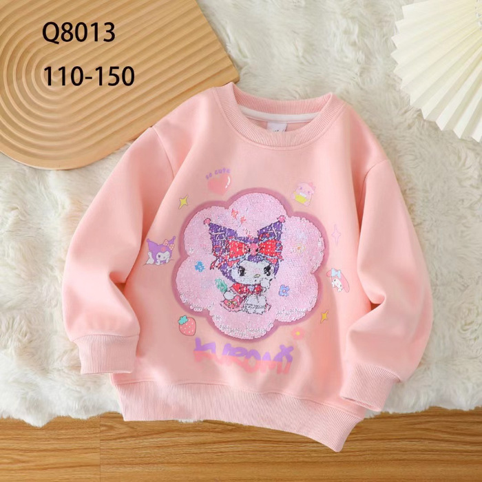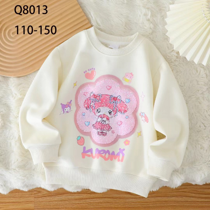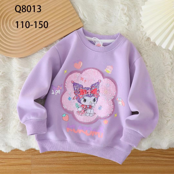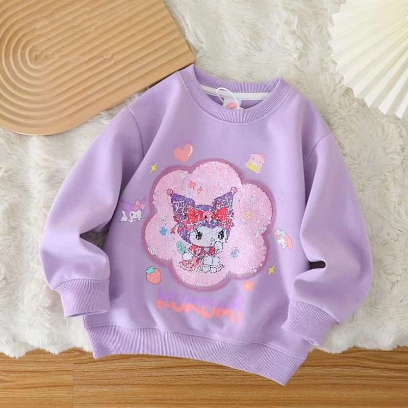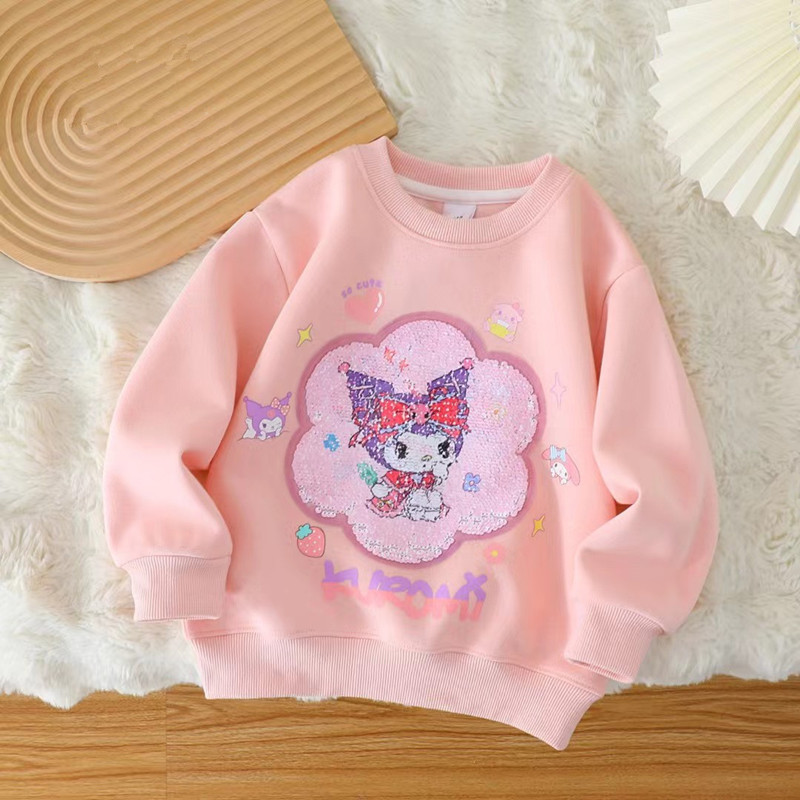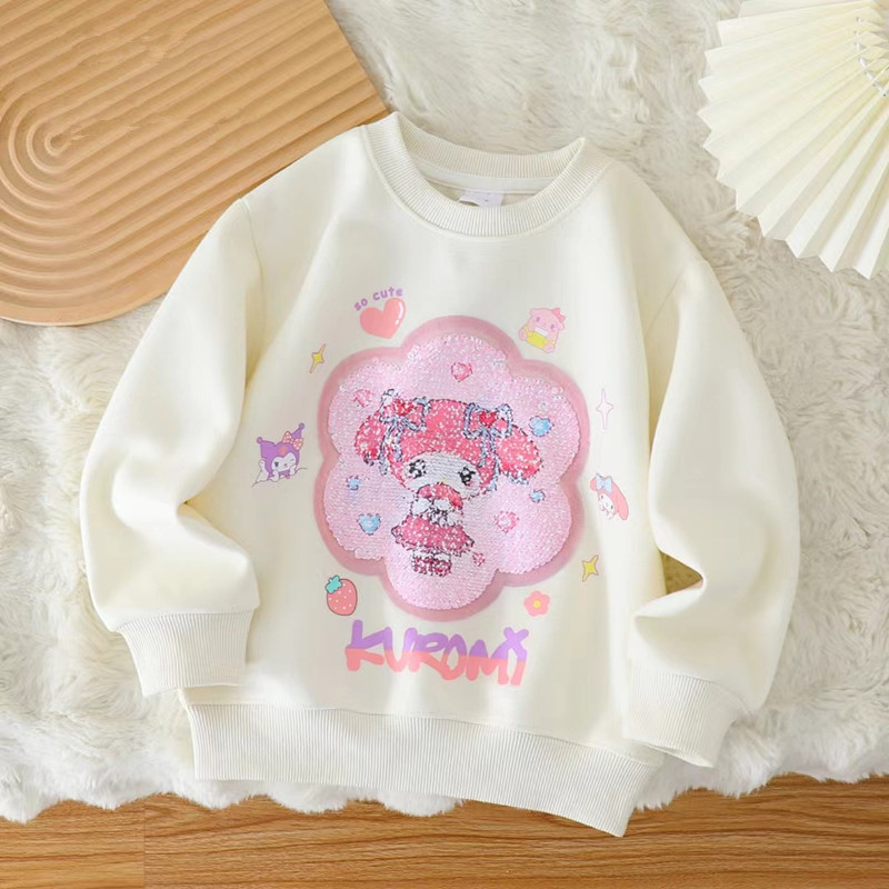 [재고] 소녀 가을 어린이 메를로 변신 구로미 만화로 변색 된 크루 넥 긴팔 자켓