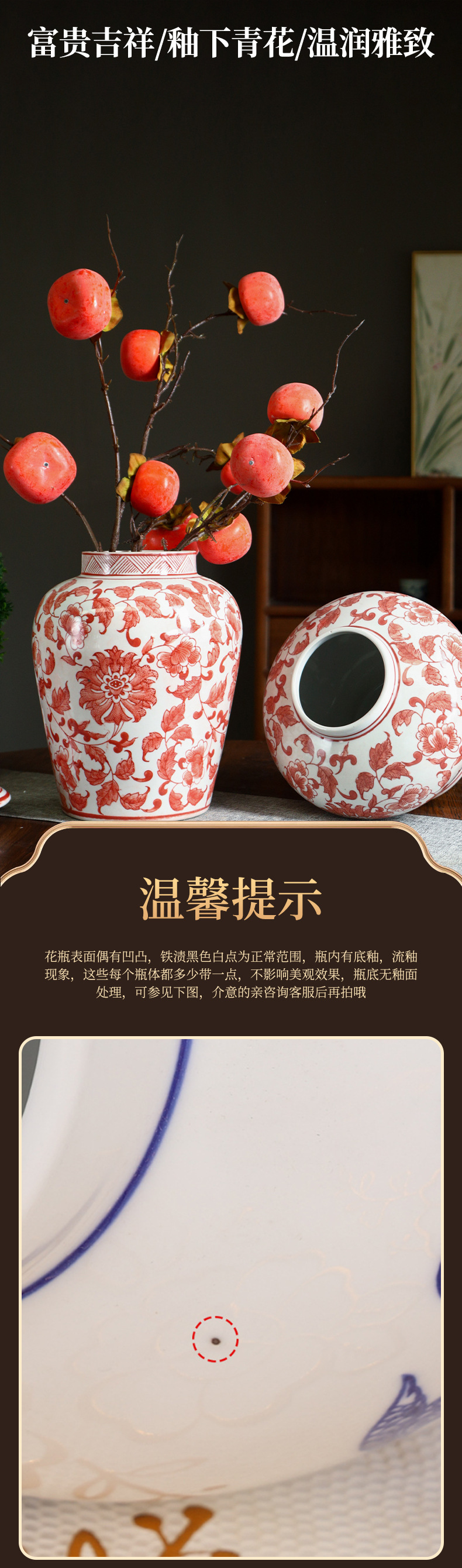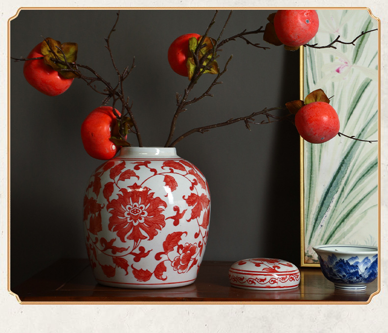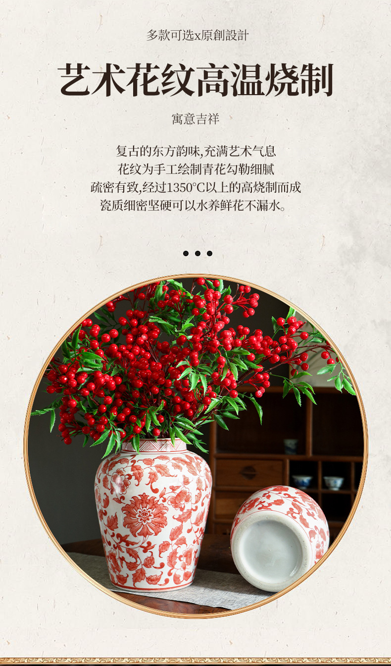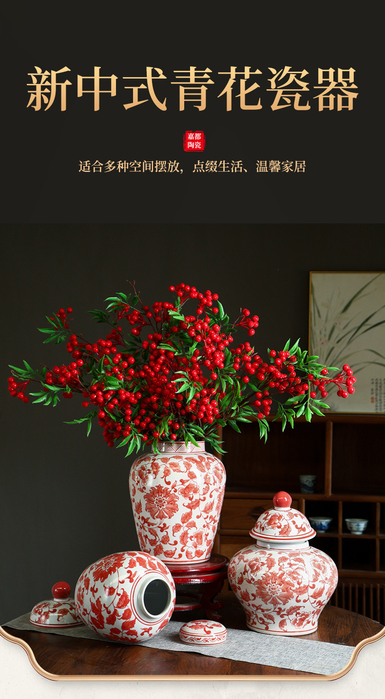 Jingdezhen 세라믹 파란색과 흰색 도자기 꽃병 빈티지 세라믹 꽃병 인터넷 기념 장식품 꽃병 보관 꽃병 장식품