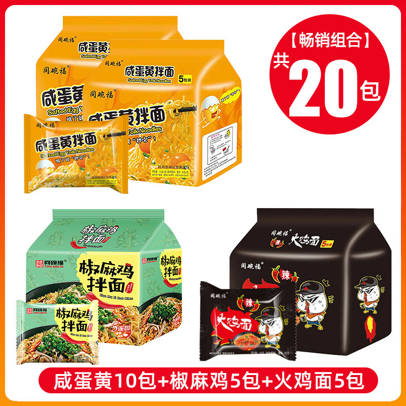• [20팩 조합] 소금에 절인 계란 노른자 국수 10팩 + 고추 치킨 국수 5팩 + 칠면조 국수 5팩