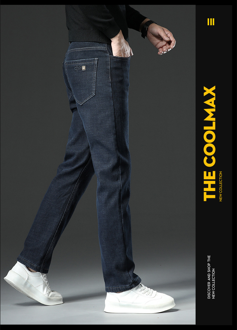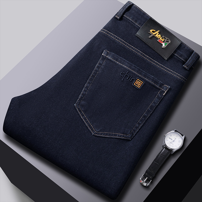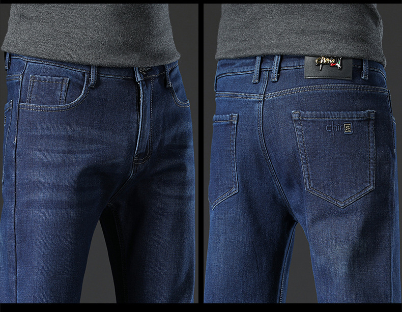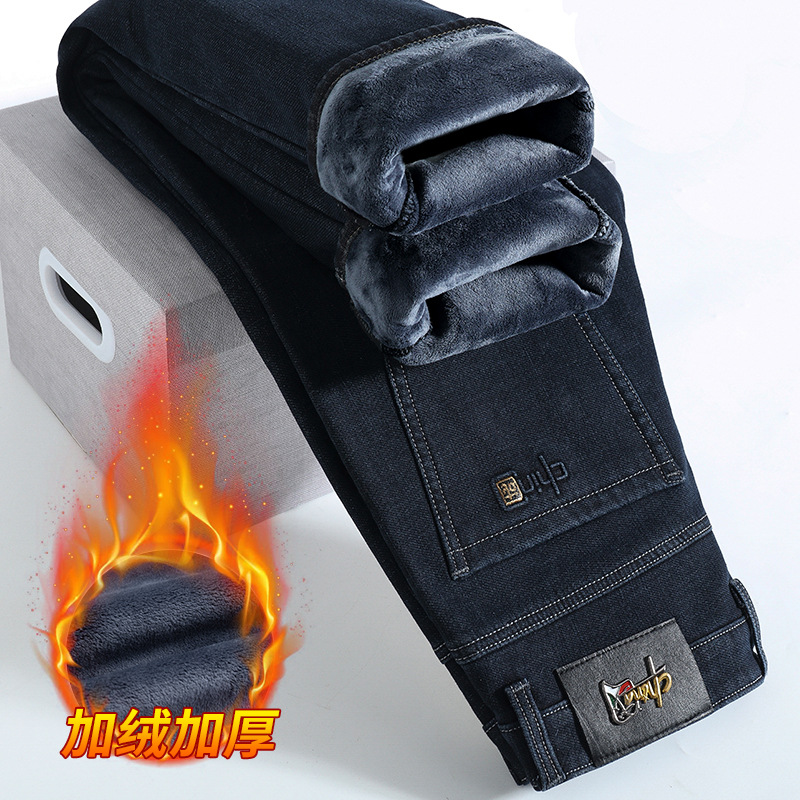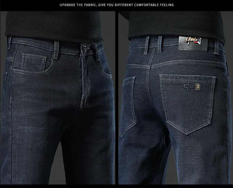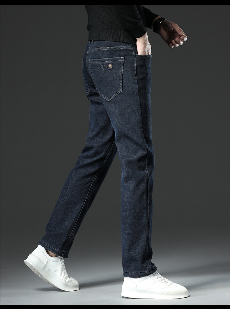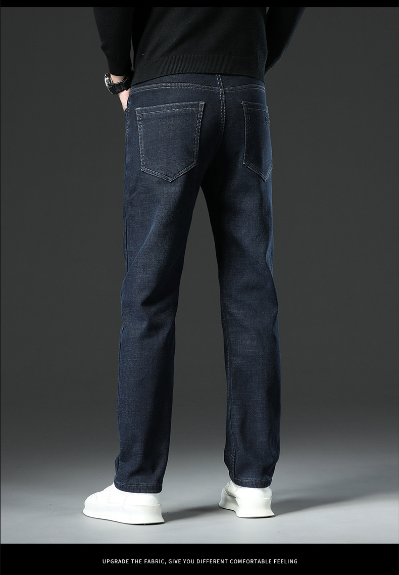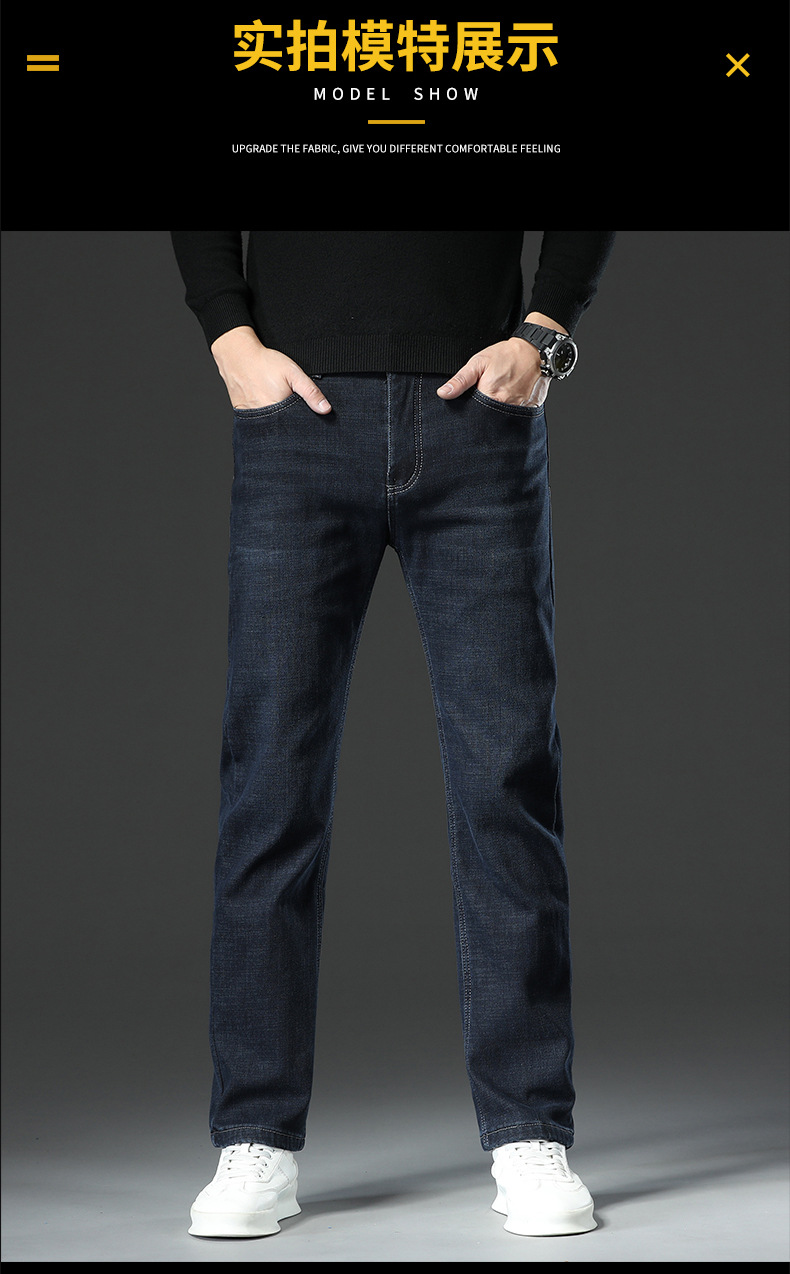 남성용 기모 데님 팬츠, 가을 겨울 비즈니스용, 따뜻하고 편안한 하이웨이스트 신축성 있는 스트레이트 팬츠, 다용도 남성복, 비즈니스 신사 스타일스토어 가기
