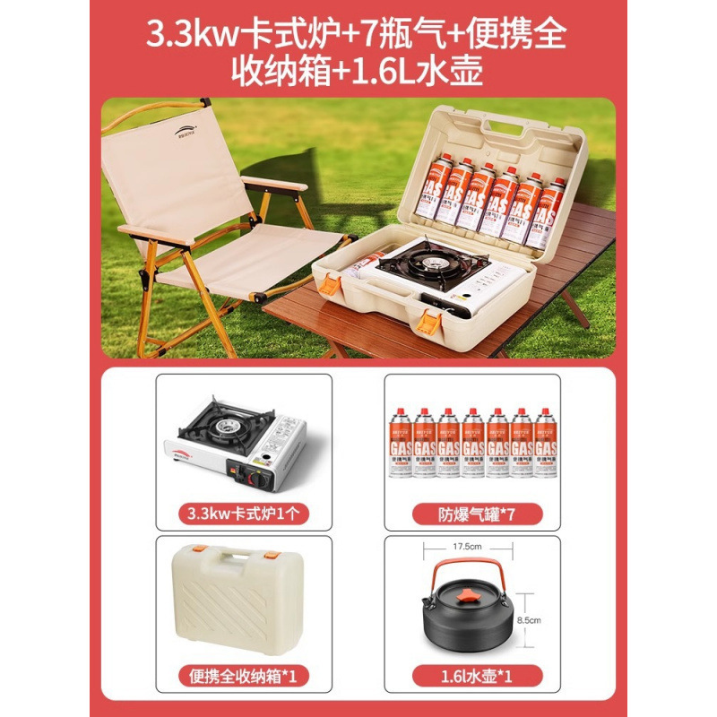 • 업그레이드된 카세트 스토브 + 가스 7병 + 휴대용 완전 보관함 + 1.6L 주전자