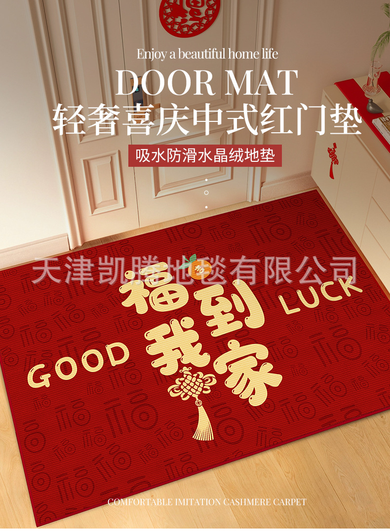폭발성 새해 빨간 문 매트 입구 문 뱀 장식 발 매트 홈 입구 Rub 토양 크리스탈 벨벳 카펫