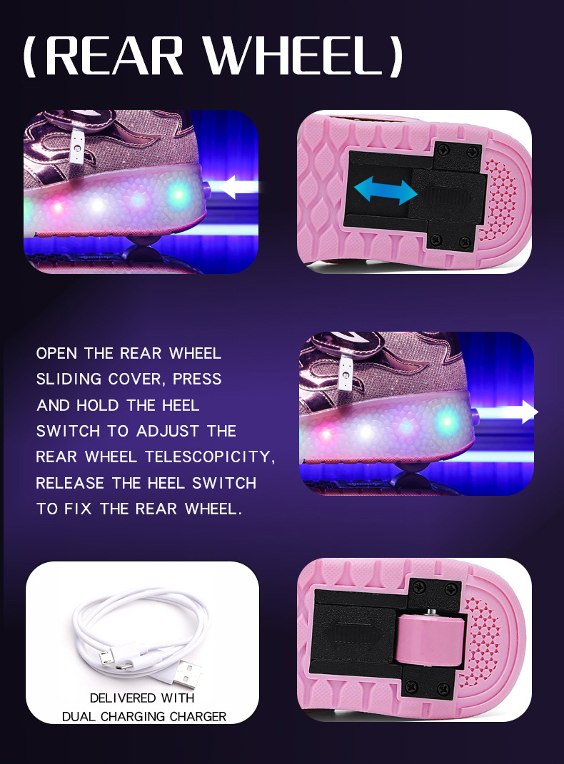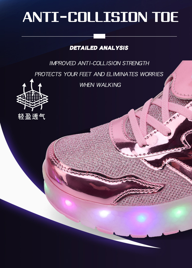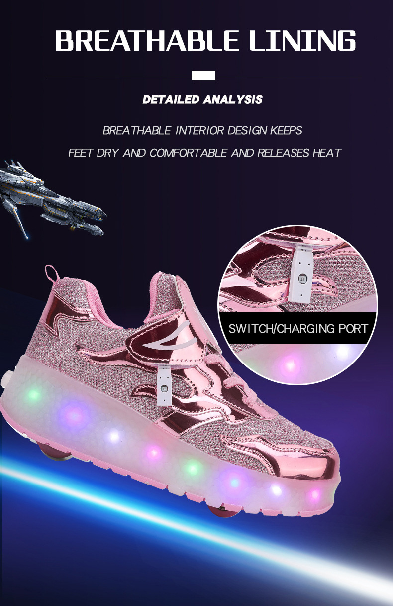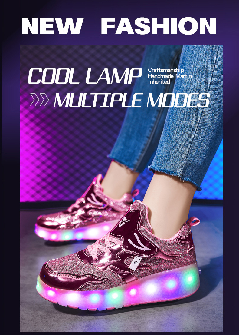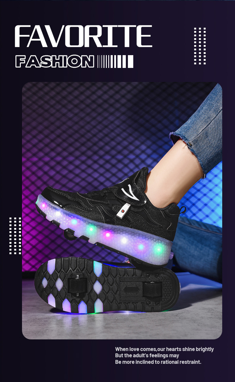 국경 간 대외 무역 heelloo 신발 4 륜 어린이 다채로운 LED 발광 신발 USB 충전 학생 도르래 신발 소년 소녀스토어 가기
