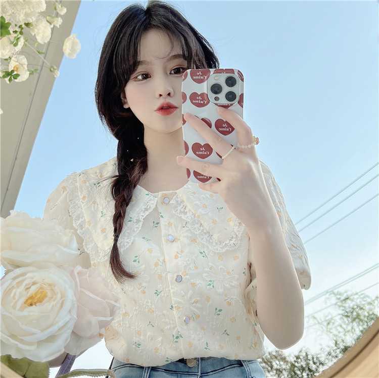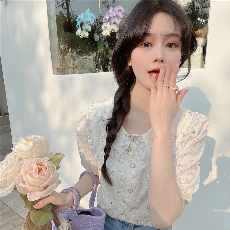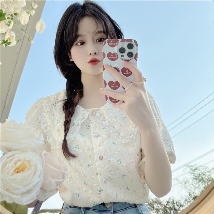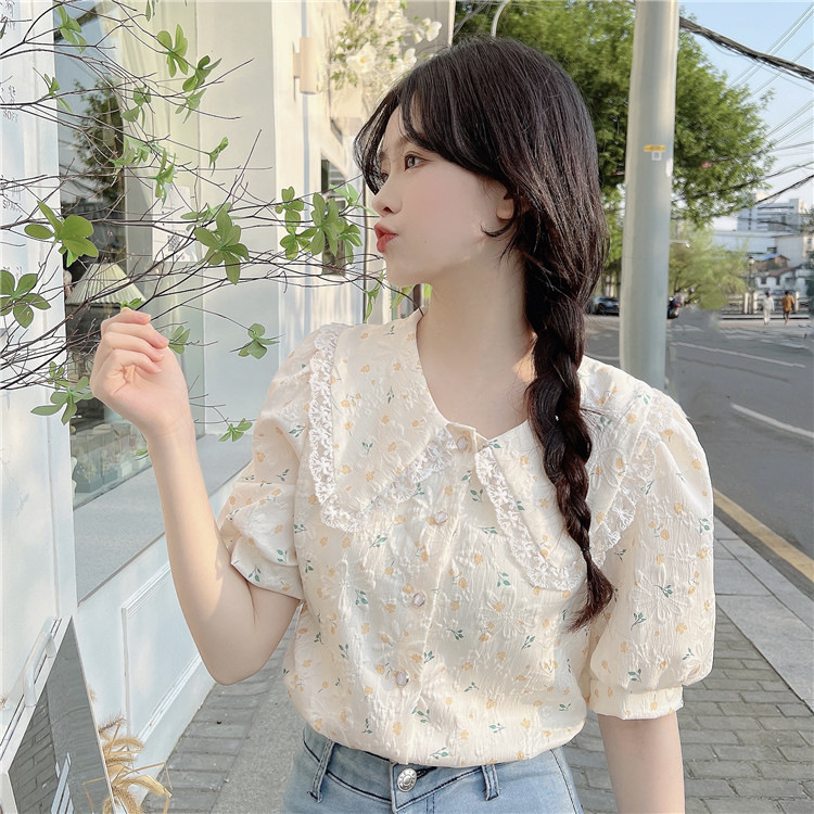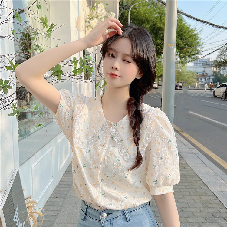 여름 꽃 거품 반팔 셔츠 디자인 센스 프랑스 달콤한 외국 스타일 인형 칼라 탑 여성의 작은 셔츠 셔츠스토어 가기