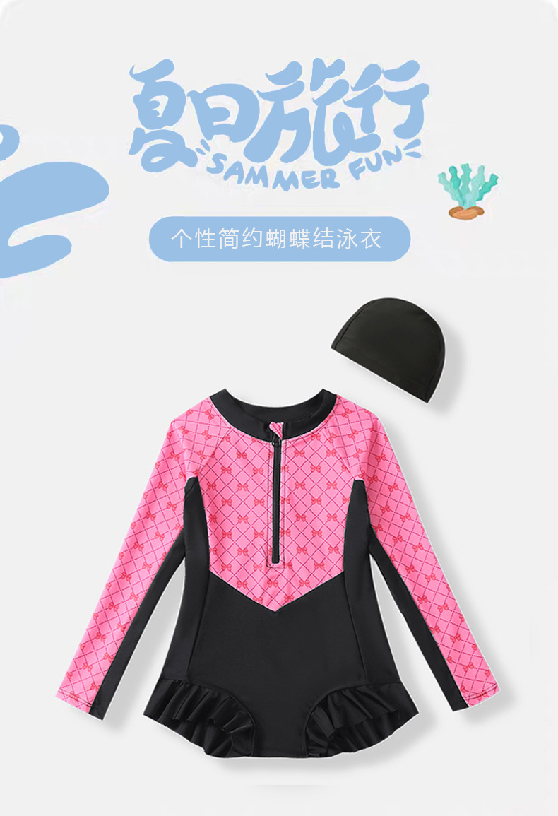 소녀 수영복 여름 2025 새로운 서양식 어린이 긴팔 선 스크린 인기있는 인터넷 어린 소녀를위한 뜨거운 빠른 건조 수영복