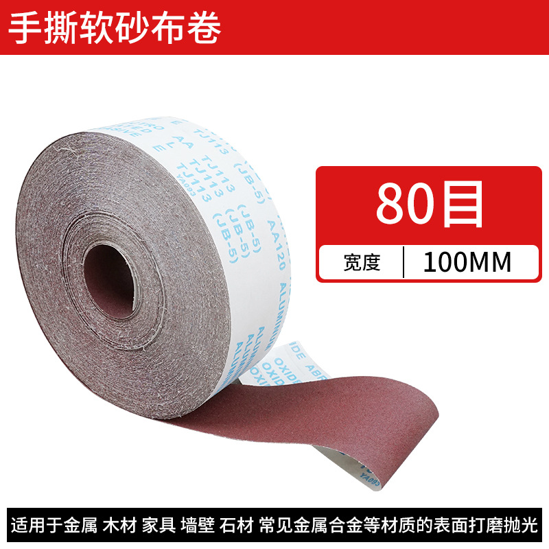 • 4inch 손으로 찢은 부드러운 에머리 천 80 메쉬【 80m / 롤】