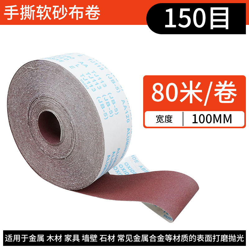 • 4inch 손으로 찢은 부드러운 에머리 천 150 메쉬【 80m / 롤】
