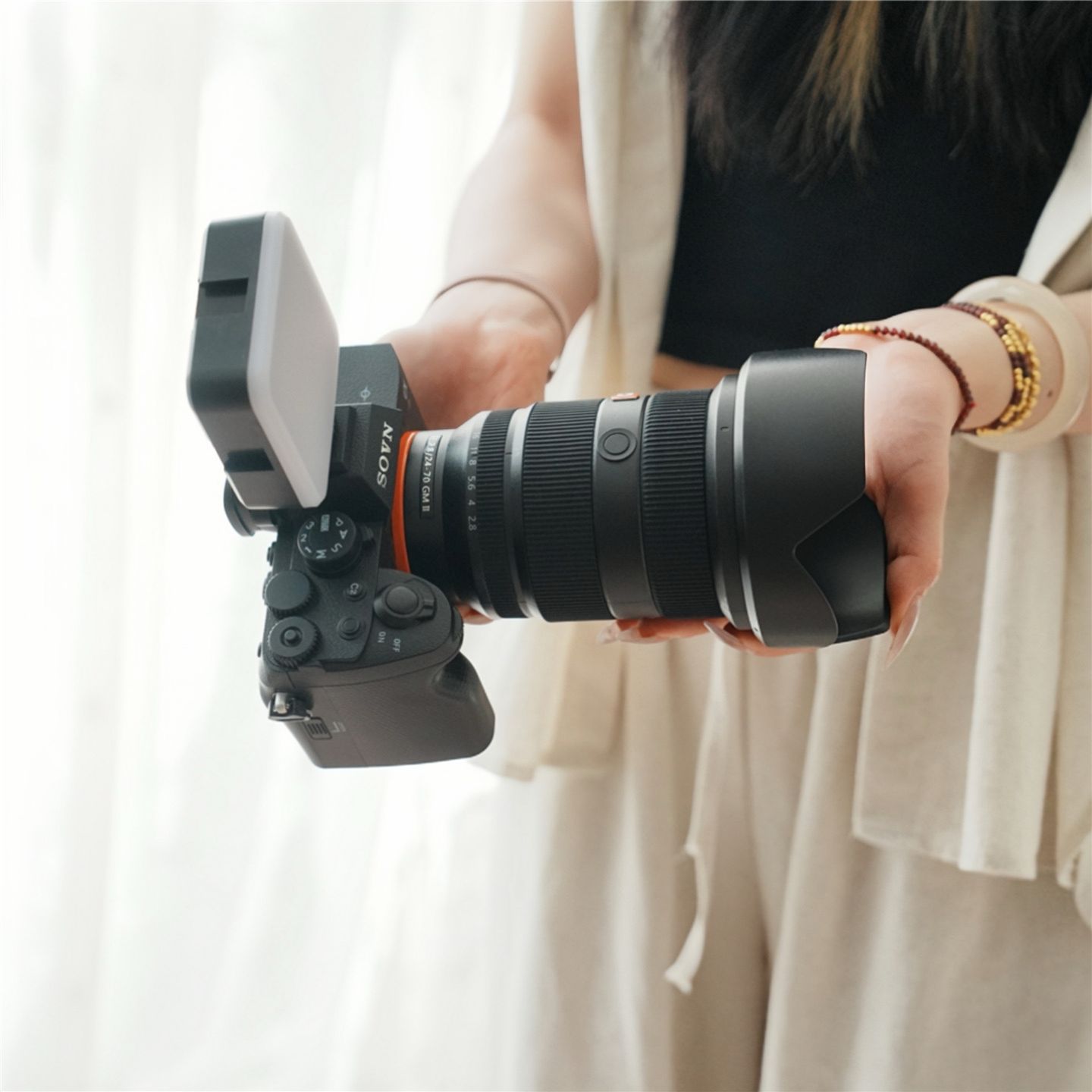本款底部默认带有螺丝孔。可架闪光灯,可架支架三角架。