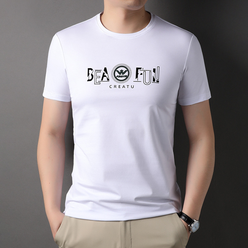 2025 신예 남자 반소매 여름 젊고 중년 한국 스타일 유행 라운드 넥 티셔츠 트렌디 반소매 탑스토어 가기