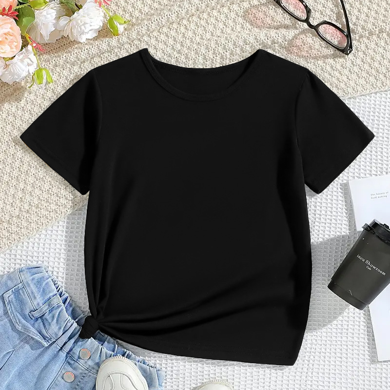새로운 크로스보더 여아 티셔츠 2026 여름 여아 베이스 레이어 패셔너블한 아동용 반팔 상의 모달 아동복스토어 가기