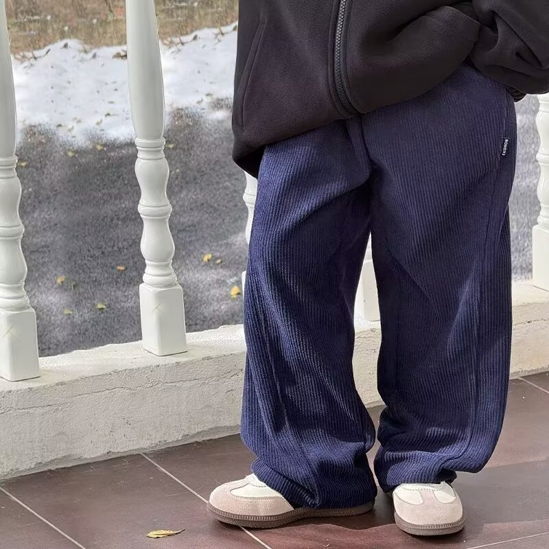 남자들의 가을과 겨울 새로운 어린이 바지 기모 캐주얼 트렌디 올매치 패션 보이즈 바지 남성 아우터웨어