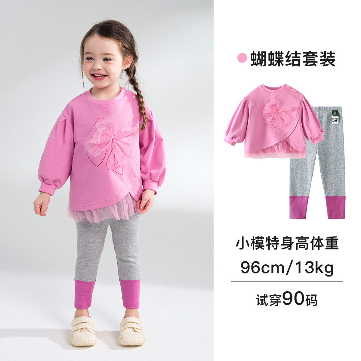 아밀라 아동복 2025 가을 신상 여아 세트 달콤한 리본 스웨트셔츠와 레깅스 투피스 세트스토어 가기
