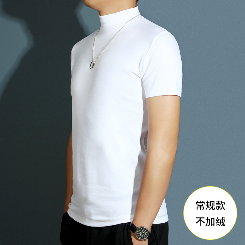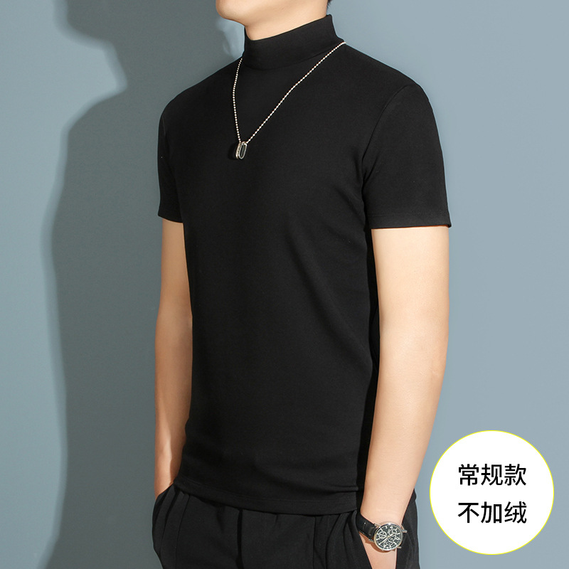 국경 간 남자 반 높이 칼라 반팔 티셔츠베이스 셔츠 여름 통기성 중고 칼라 얇은 반소매 남성용 트렌디 티셔츠