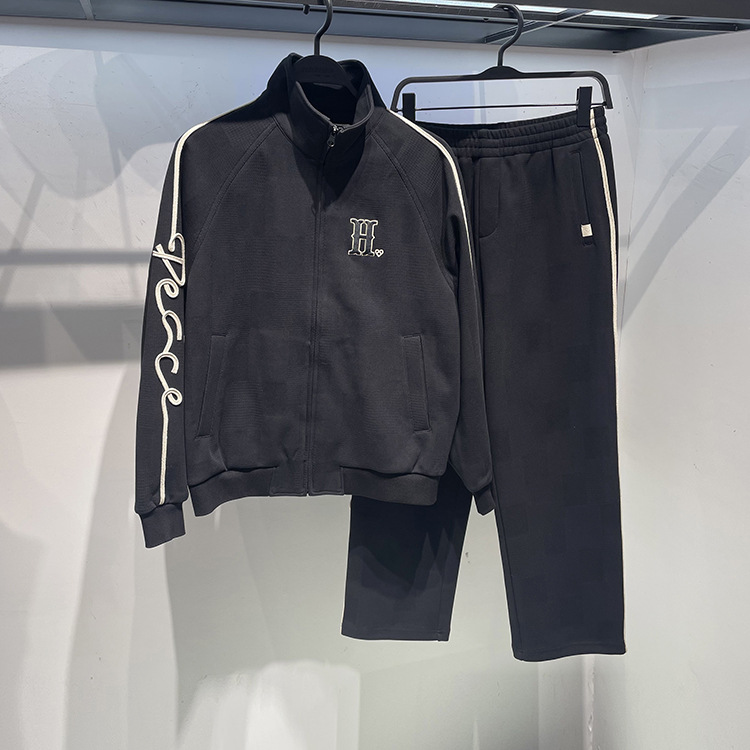 봄 세트 패션 브랜드 남성 수직 칼라 카디건 지퍼 스웨터 스포츠 리본 패션 스트레이트 캐주얼 긴 바지
