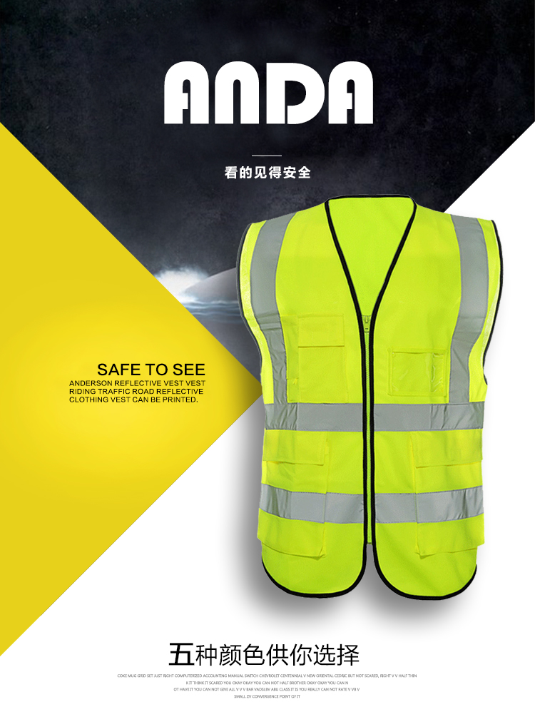 안다 반사 조끼 조끼 조끼 멀티 포켓 승마 건설 안전 반사 의류 교통 조끼 반사 의류 인쇄스토어 가기