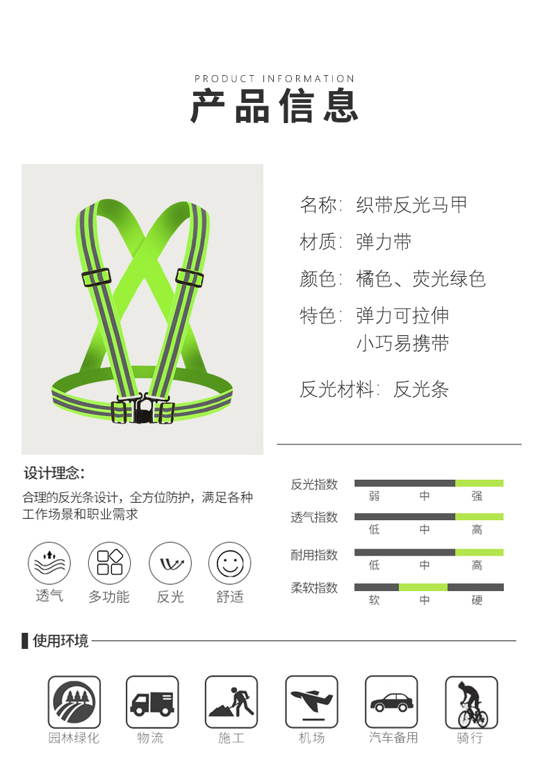반사 안전 조끼 승마 야간 달리기 위생 공학 경고 보호 탄성 스트랩 반사 의류