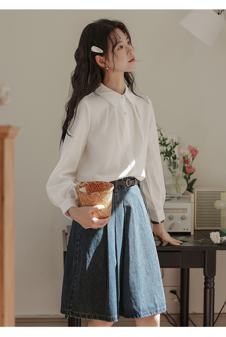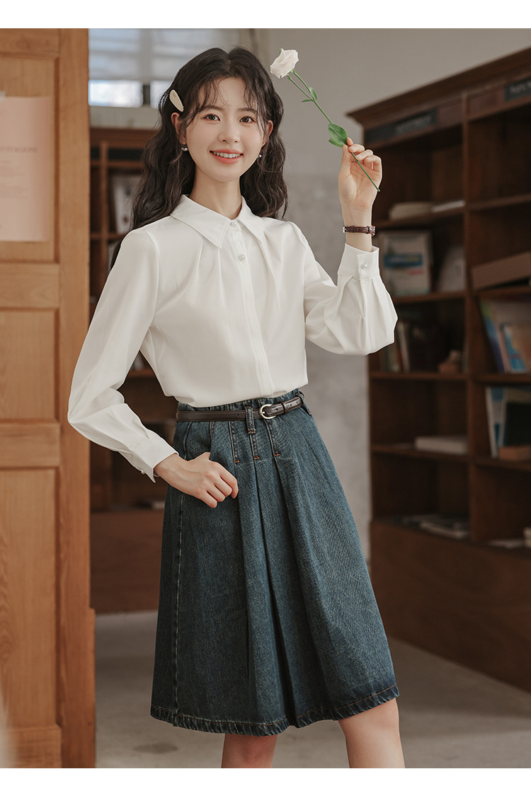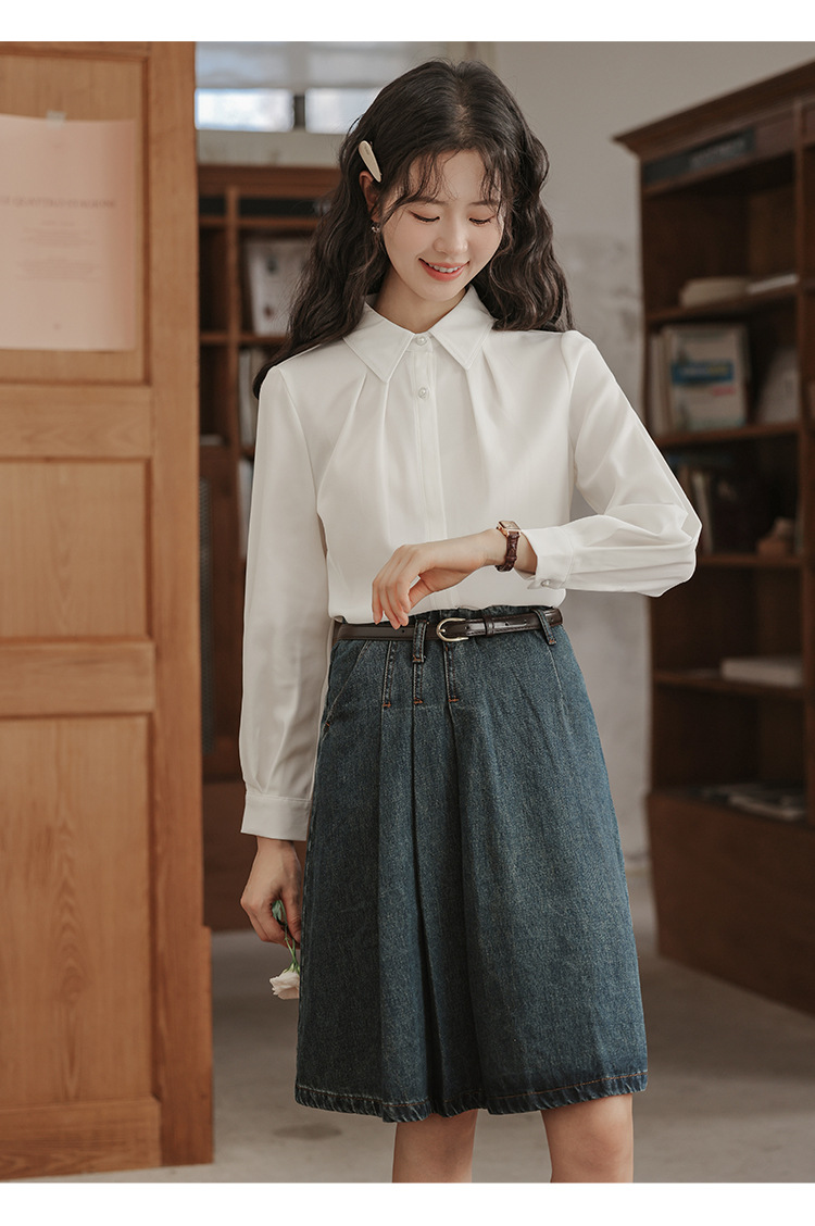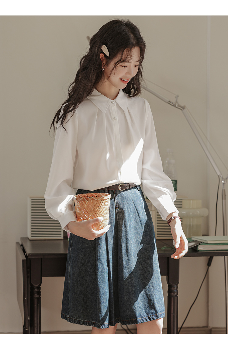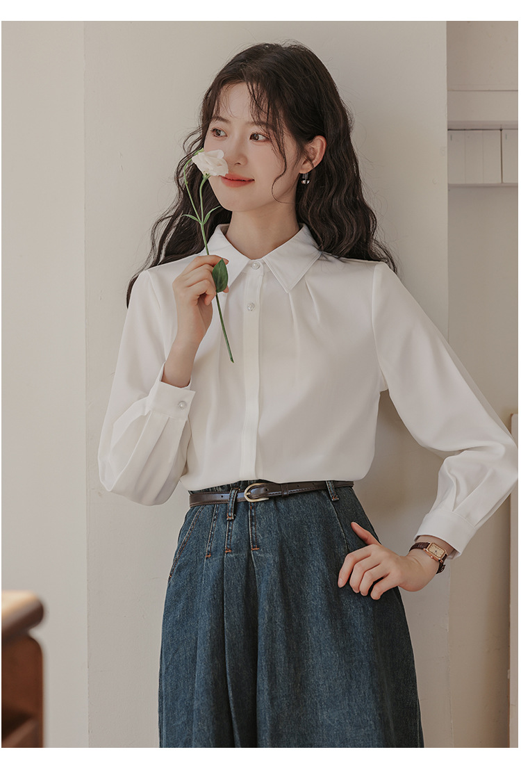 봄 2025 새로운 프랑스 흰색 어깨 통근 인터뷰 옷깃 긴 소매 주름 디자인 셔츠 최고 여성