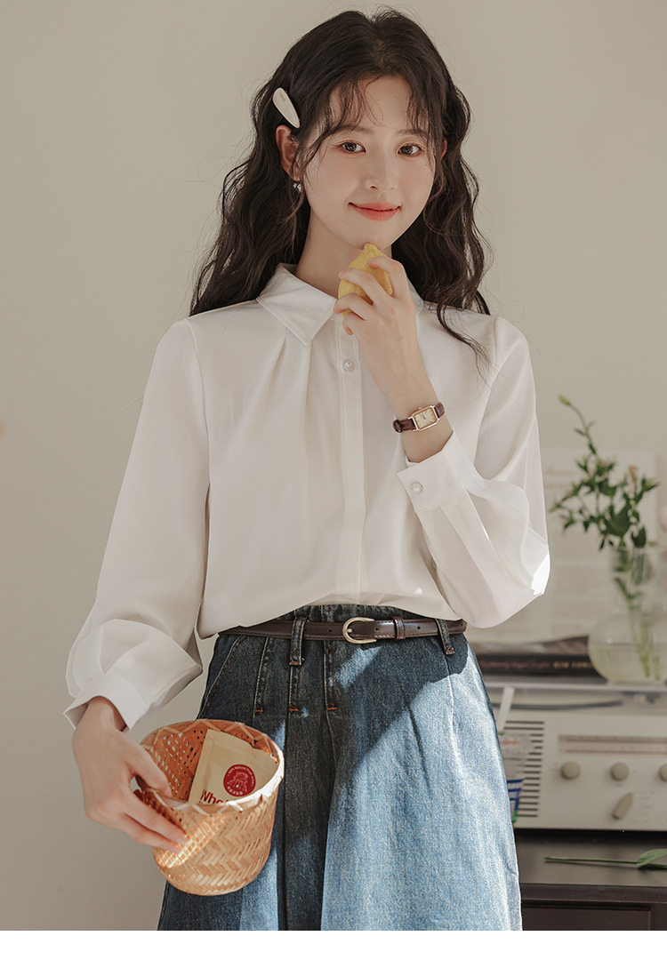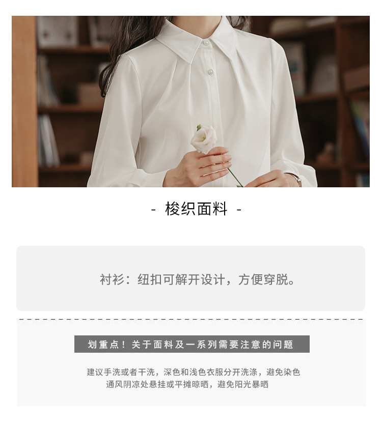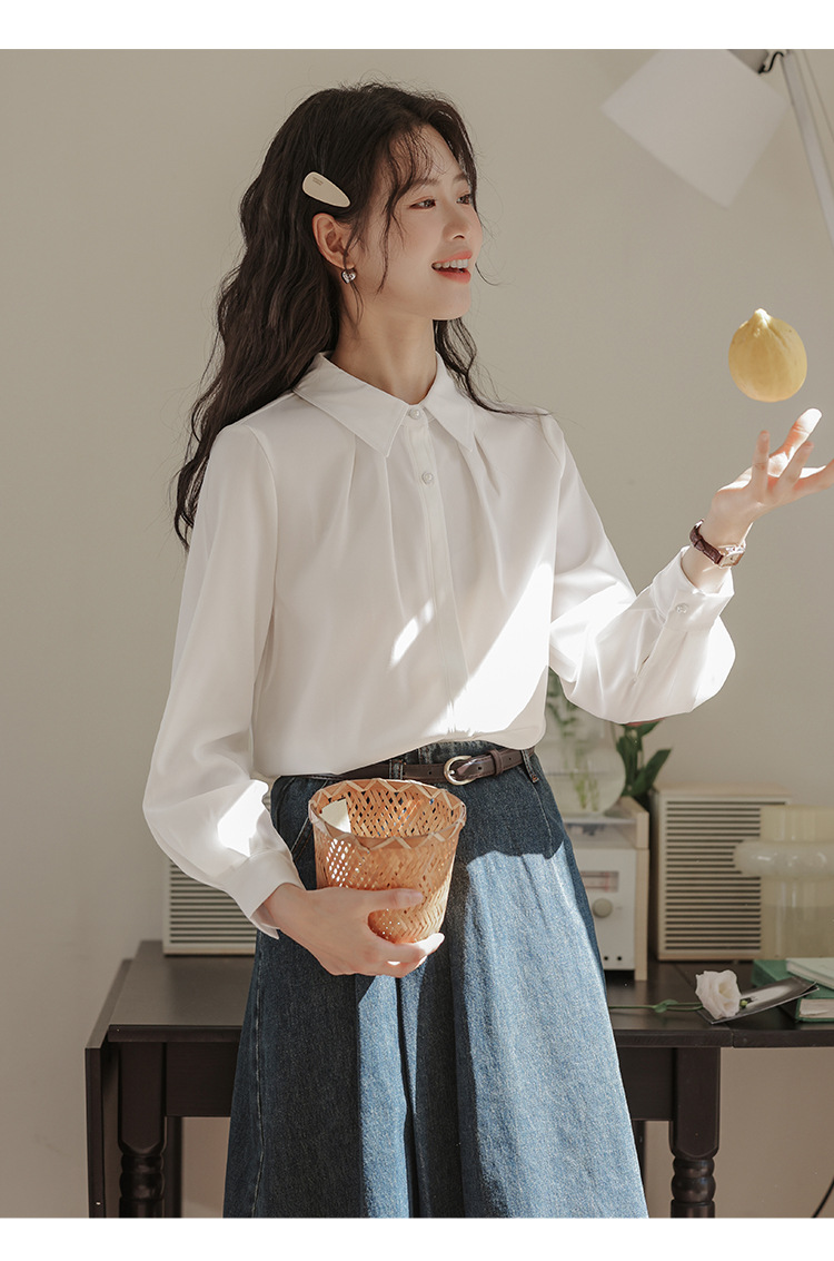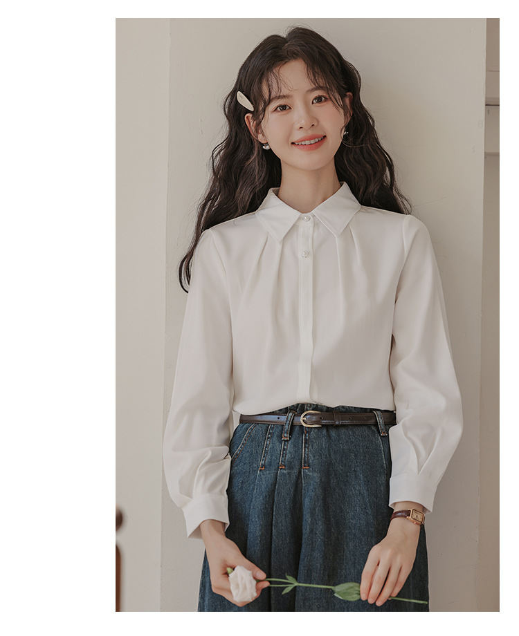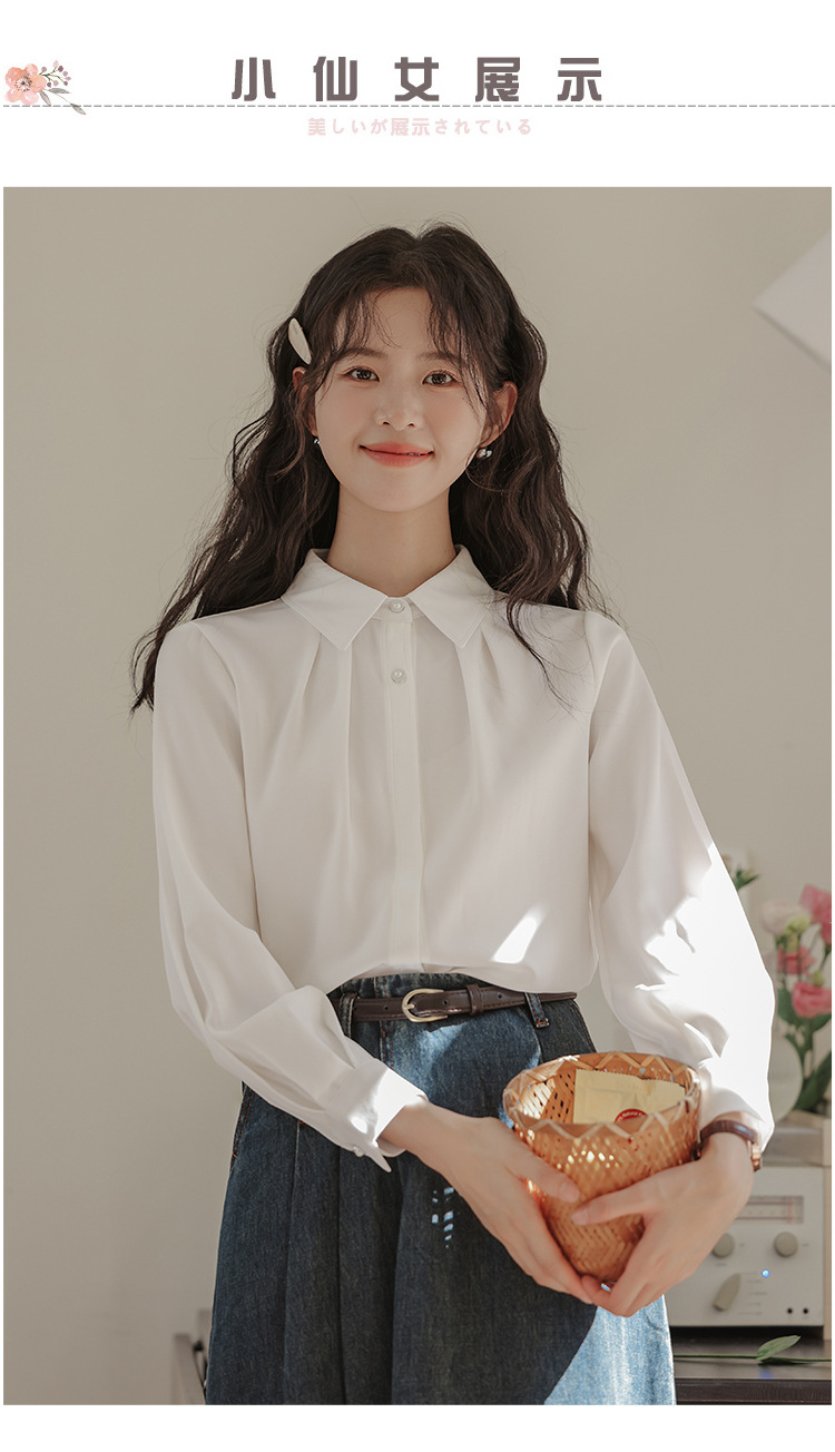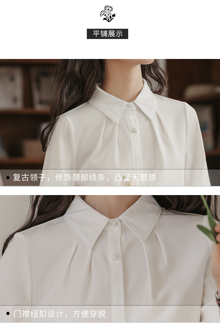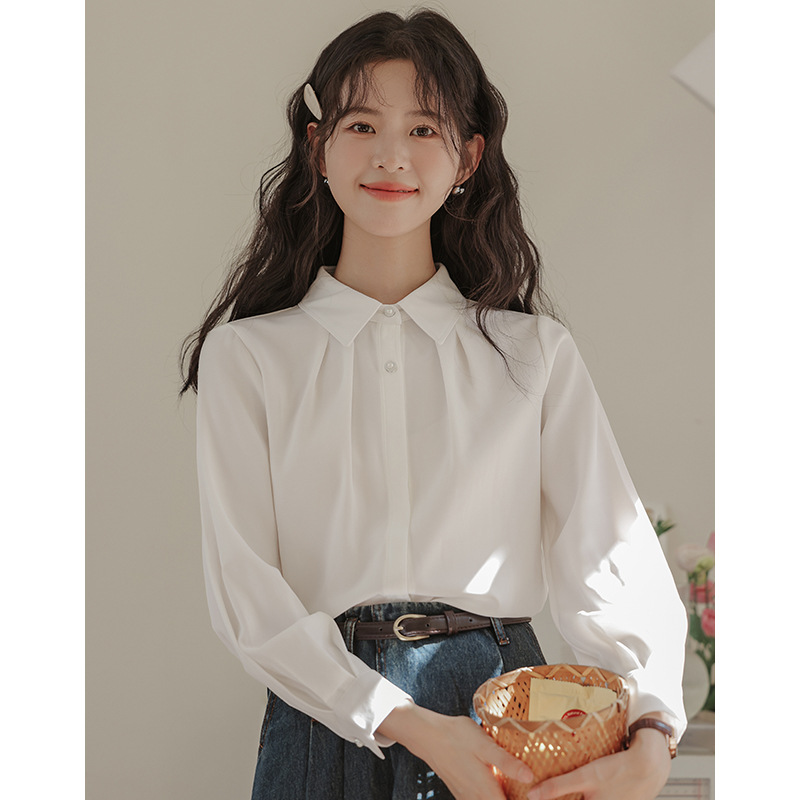 봄 2025 새로운 프랑스 흰색 어깨 통근 인터뷰 옷깃 긴 소매 주름 디자인 셔츠 최고 여성스토어 가기