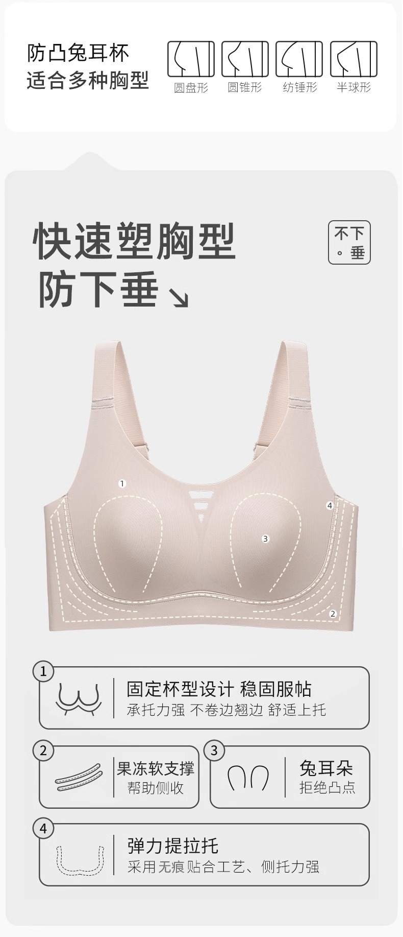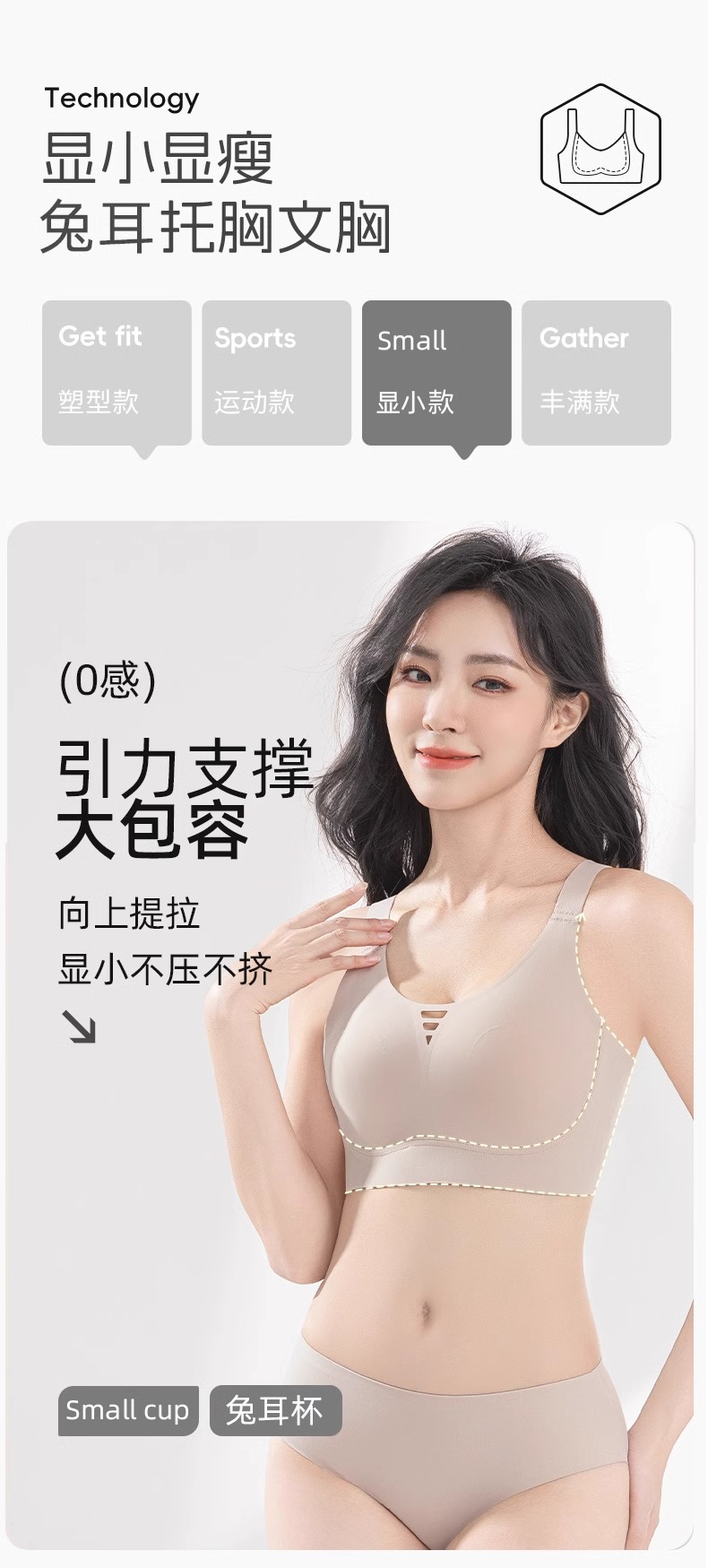 추적없는 가슴 플러스 사이즈 스포츠 속옷 여성의 얇은 대형 가슴 쇼블 작은 강철 반지가없는 글로우 사이드 타이트 안티 처짐 브래지어스토어 가기