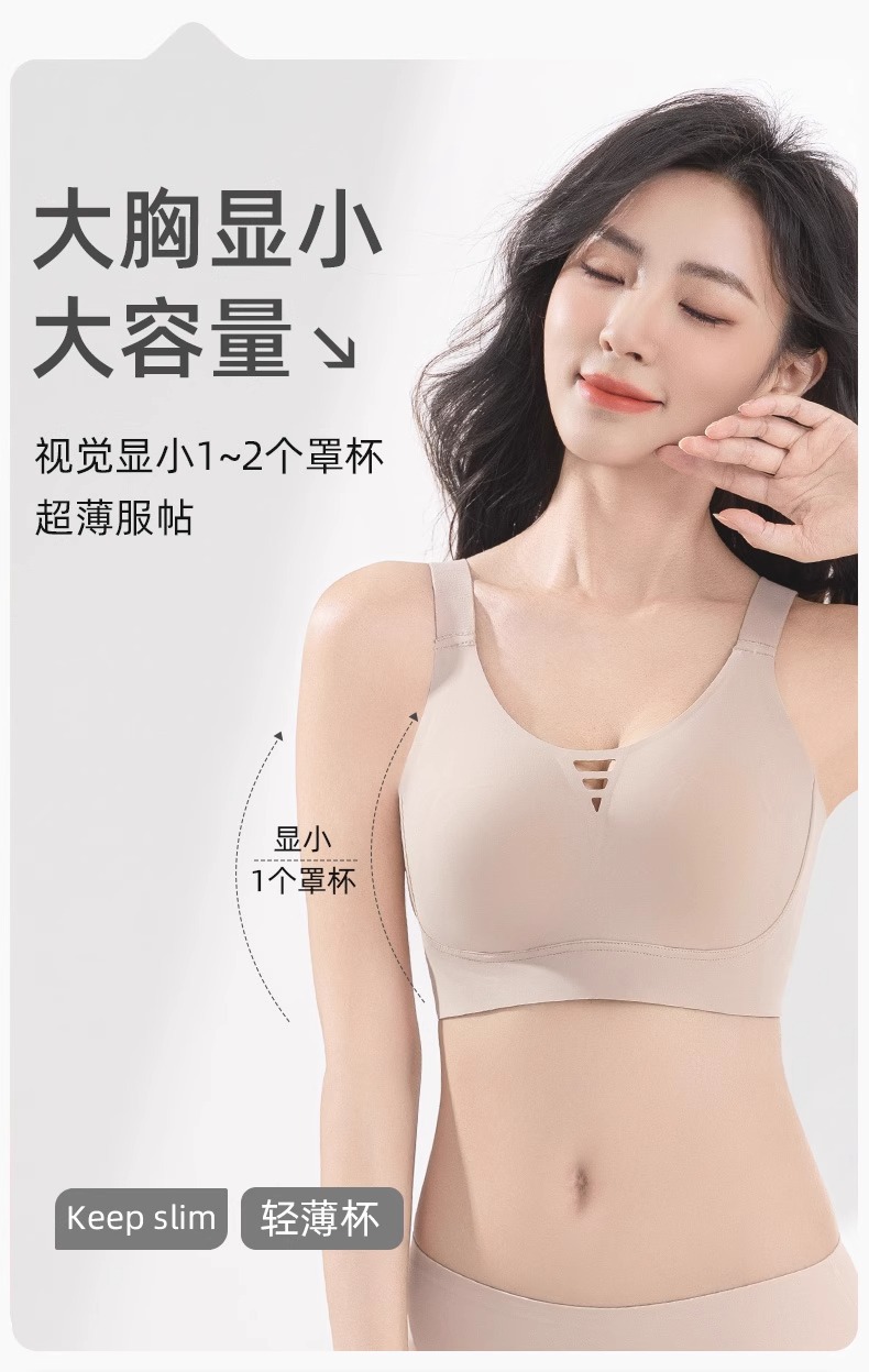 추적없는 가슴 플러스 사이즈 스포츠 속옷 여성의 얇은 대형 가슴 쇼블 작은 강철 반지가없는 글로우 사이드 타이트 안티 처짐 브래지어