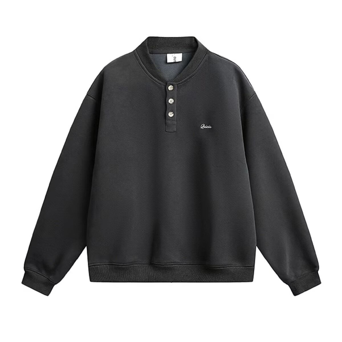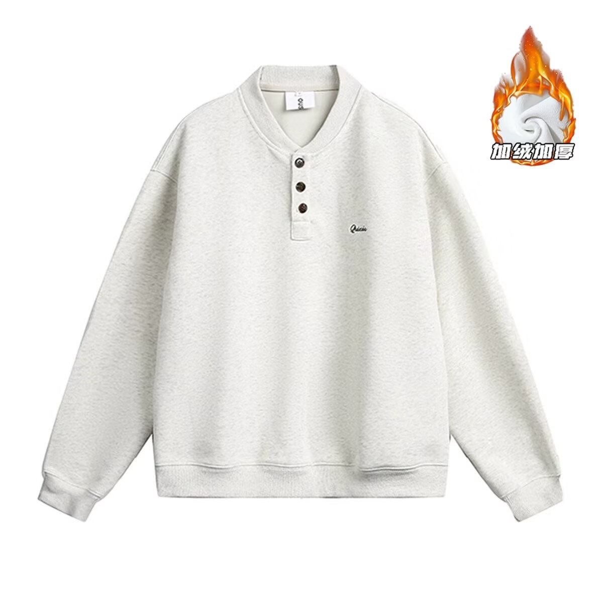 남성용 미국 자수 헨리 칼라 스웨트 셔츠 플러스 벨벳 겨울 보이시 루즈 자켓 레트로 게으른 커플 탑스토어 가기