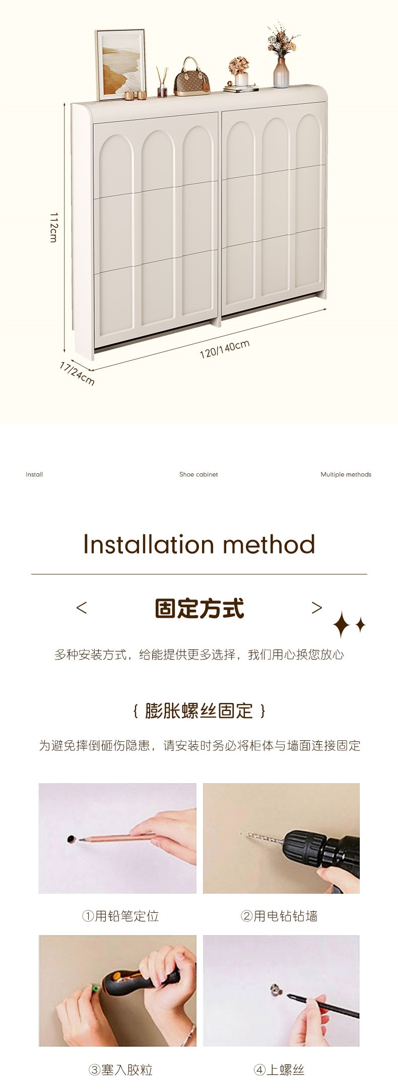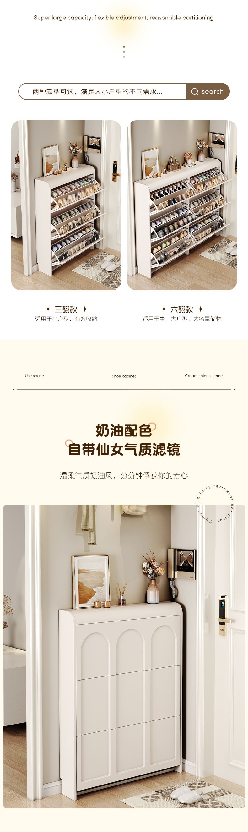 크림 스타일 티핑 신발 캐비닛 가정용 현관 실내 새로운 스타일 2024 입구 캐비닛 통합 신발 랙