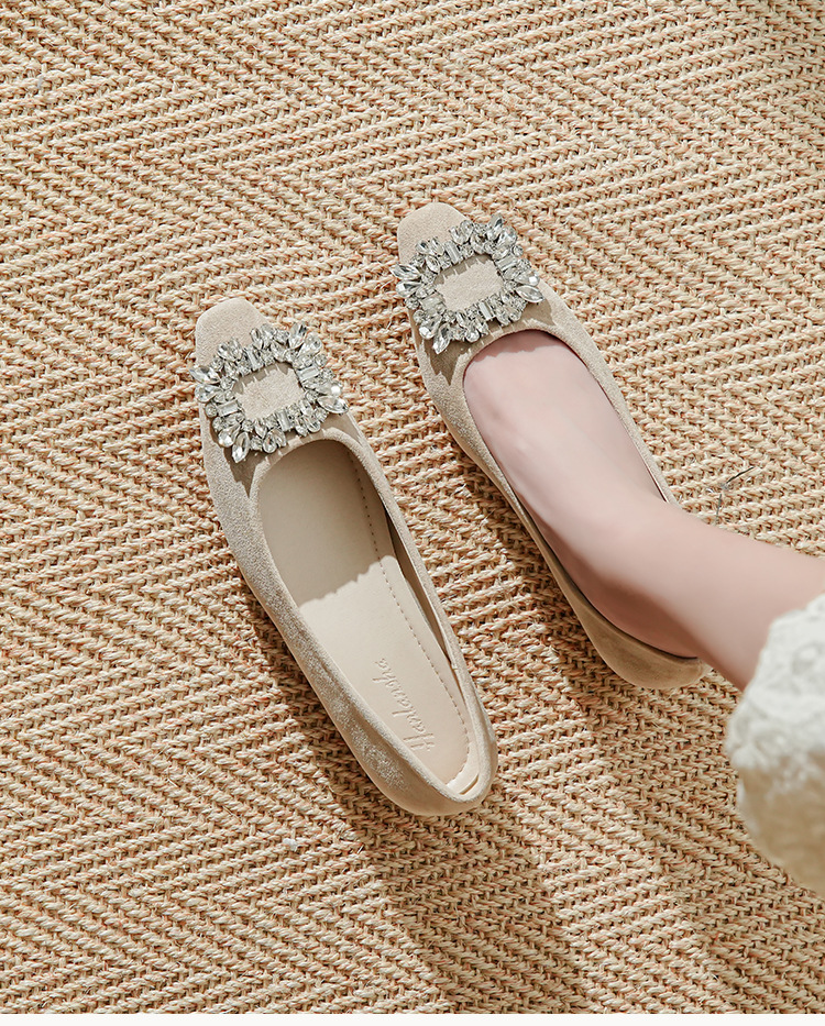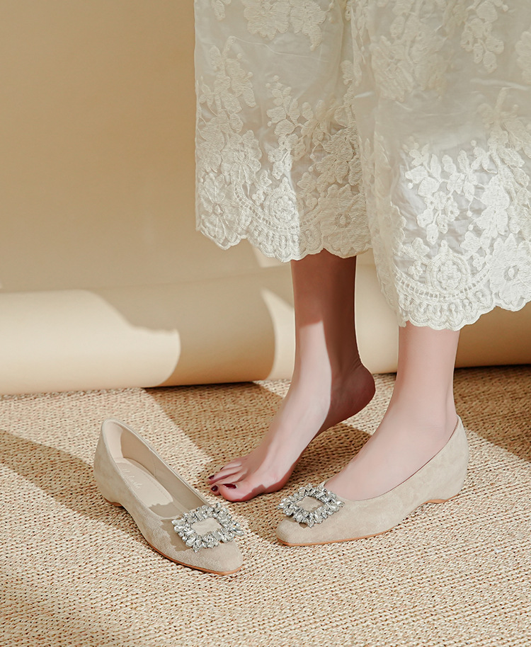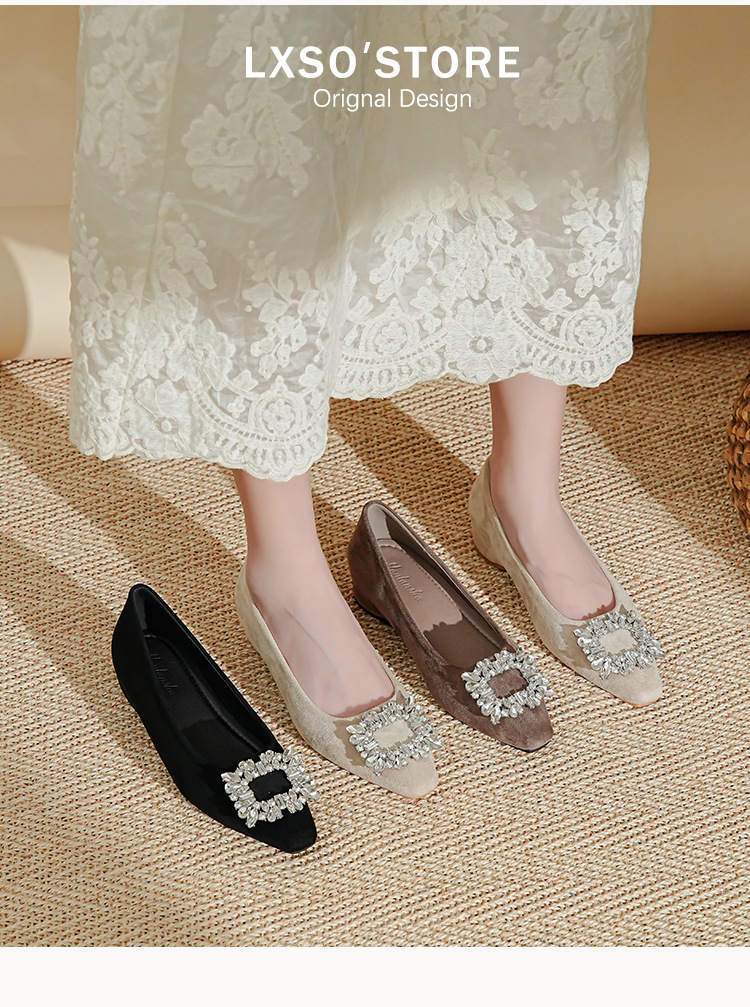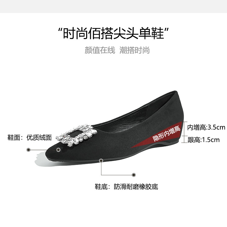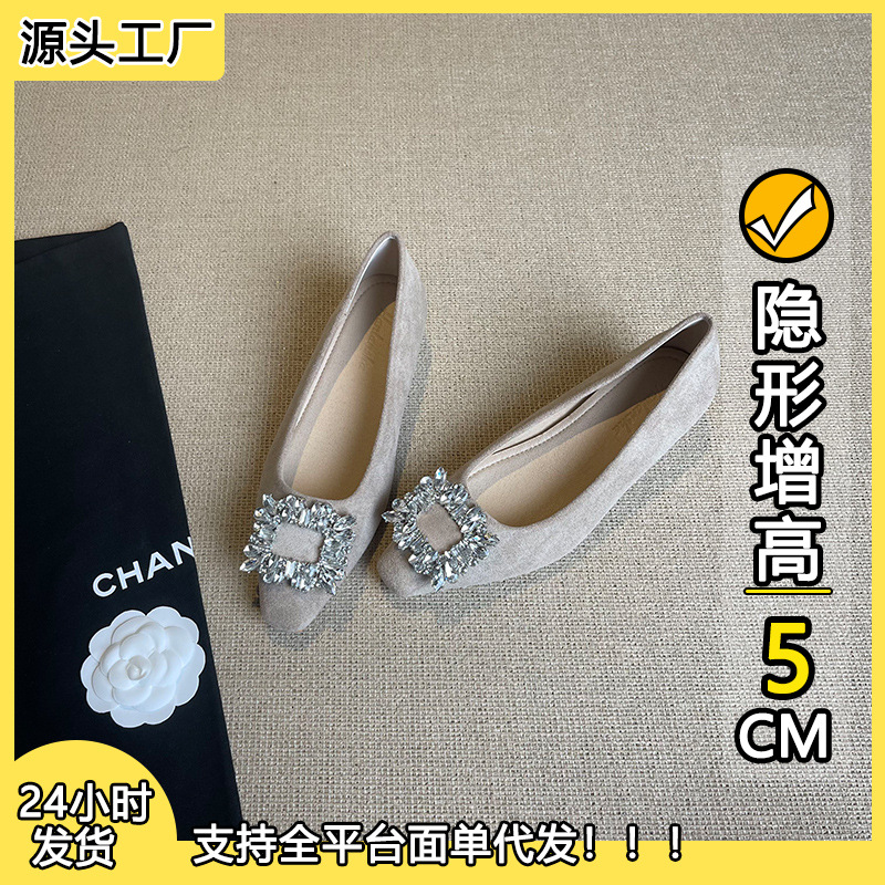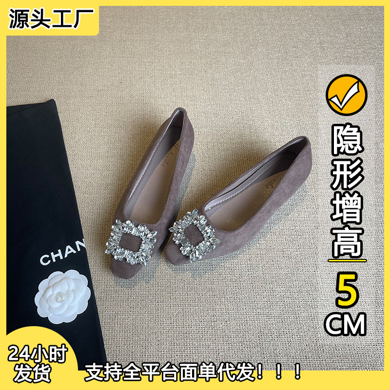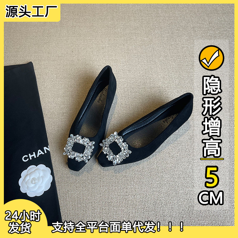 여성을위한 내부 높이 증가 5cm 스퀘어 토 라인스톤 슈즈 2025 신상 여름 통근 스퀘어 버클 비니 슈즈 패션스토어 가기