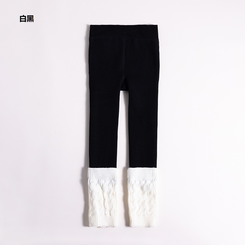 소녀 기모 두꺼운 가을과 겨울 양말 바느질 레깅스 유행 대마 패턴 양말 흰색면 따뜻한 레깅스