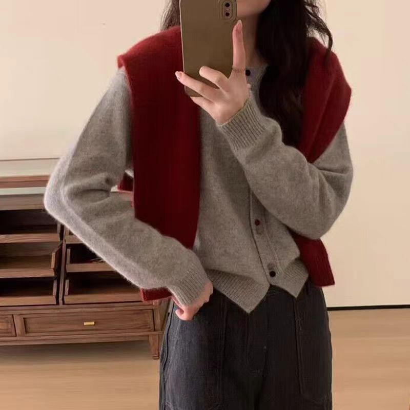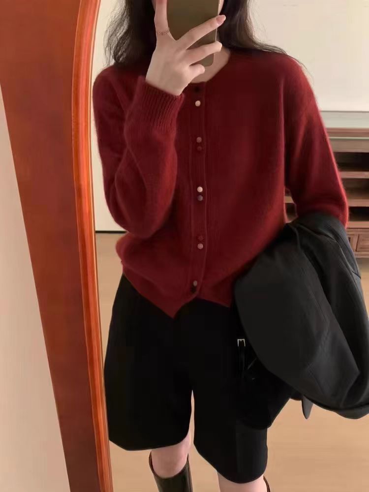 새해 레드 크루 넥 레드 카디건 울 스웨터 여성 유럽 가을과 겨울 캐시미어 느슨한 니트 스웨터 재킷스토어 가기