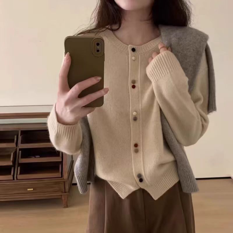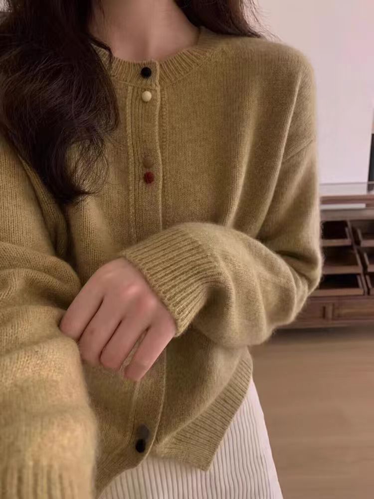 새해 레드 크루 넥 레드 카디건 울 스웨터 여성 유럽 가을과 겨울 캐시미어 느슨한 니트 스웨터 재킷