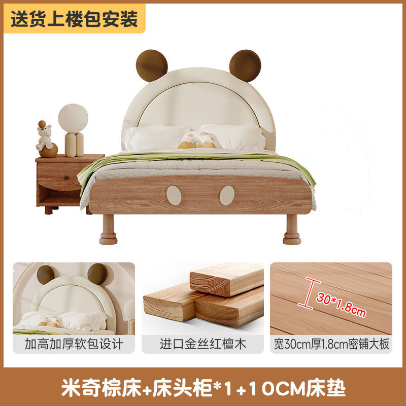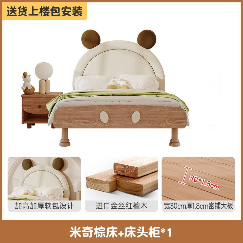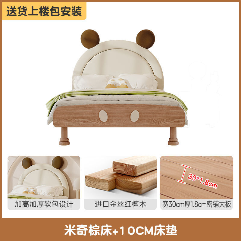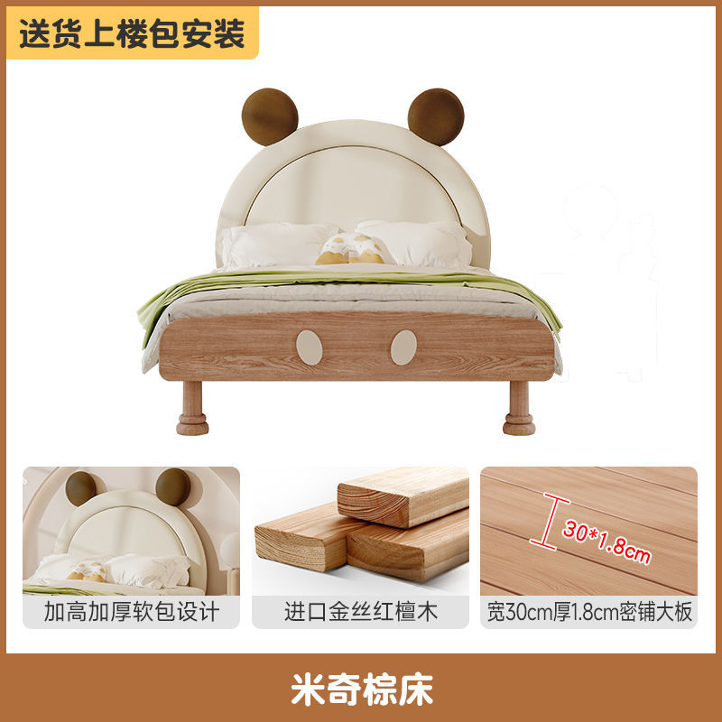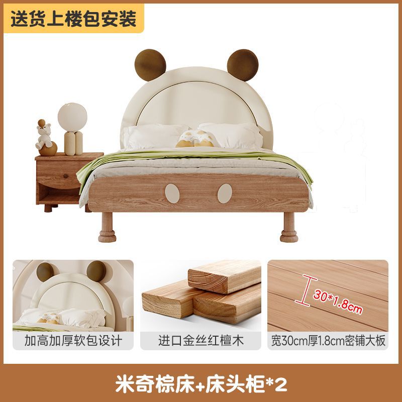 모든 단단한 나무 어린이 침대 1.2 m 소년 침대 홈 침실 간단한 미키 침대 1.5 m 소녀 부드러운 가방 공주 침대