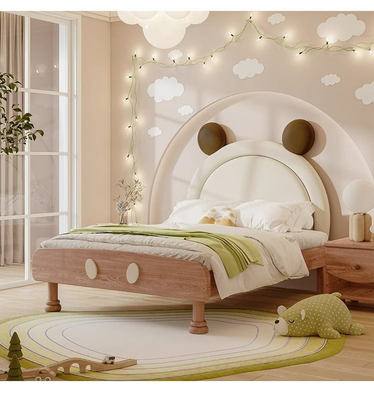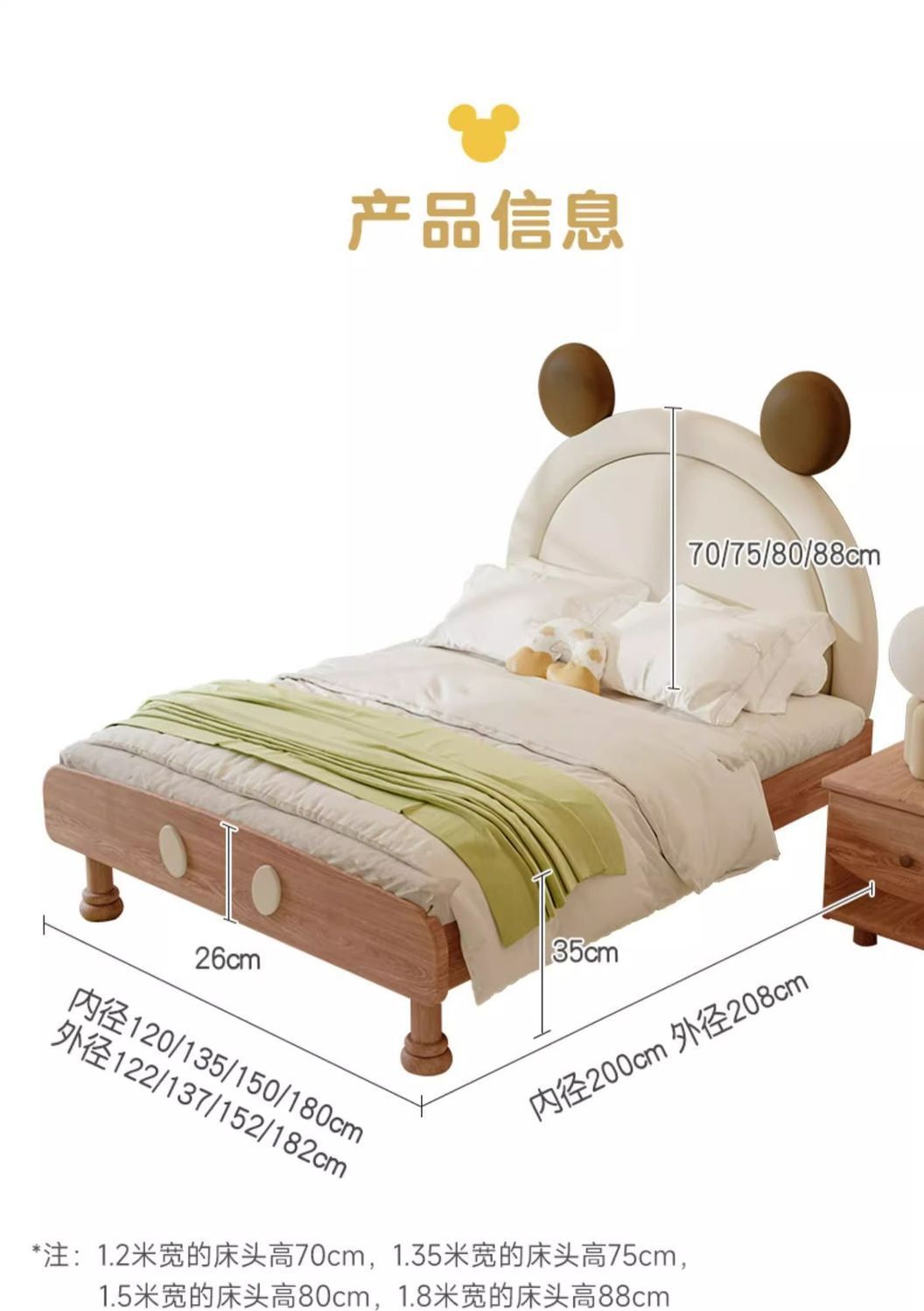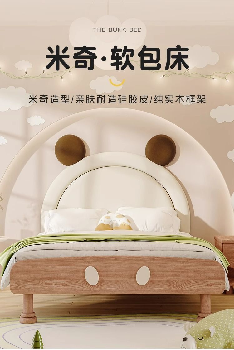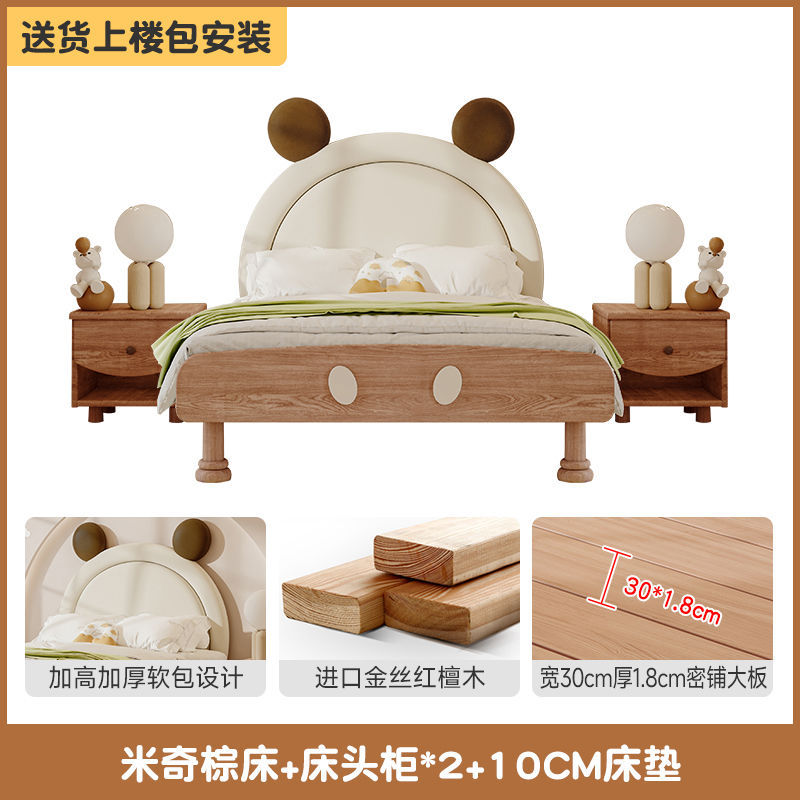 모든 단단한 나무 어린이 침대 1.2 m 소년 침대 홈 침실 간단한 미키 침대 1.5 m 소녀 부드러운 가방 공주 침대