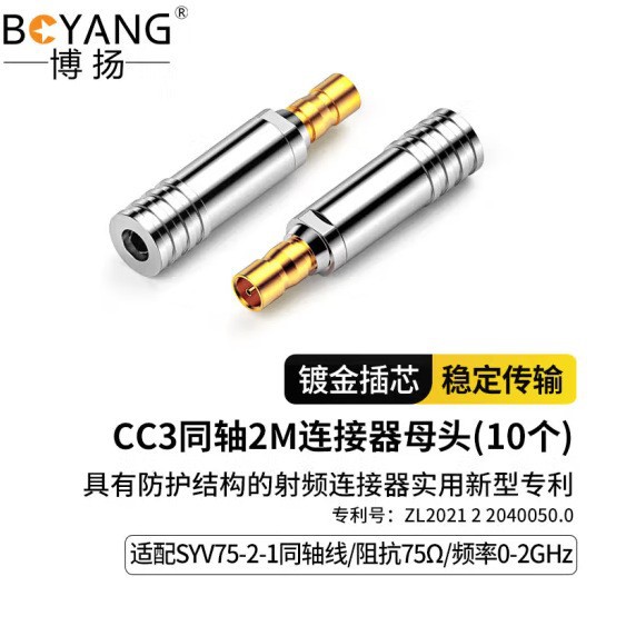 博扬CC3接头 2M头E1同轴连接器C3-K/AT&T-K-2-1/-2-2系列同轴SYV-75-2-1插头10个装 BY-CC3*1 合格证*1