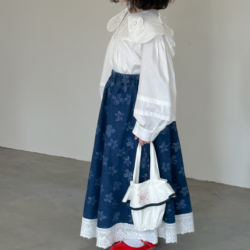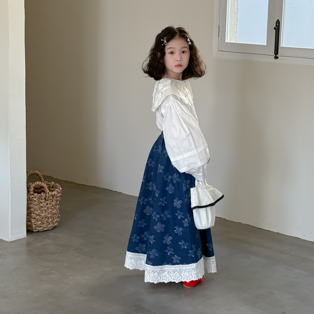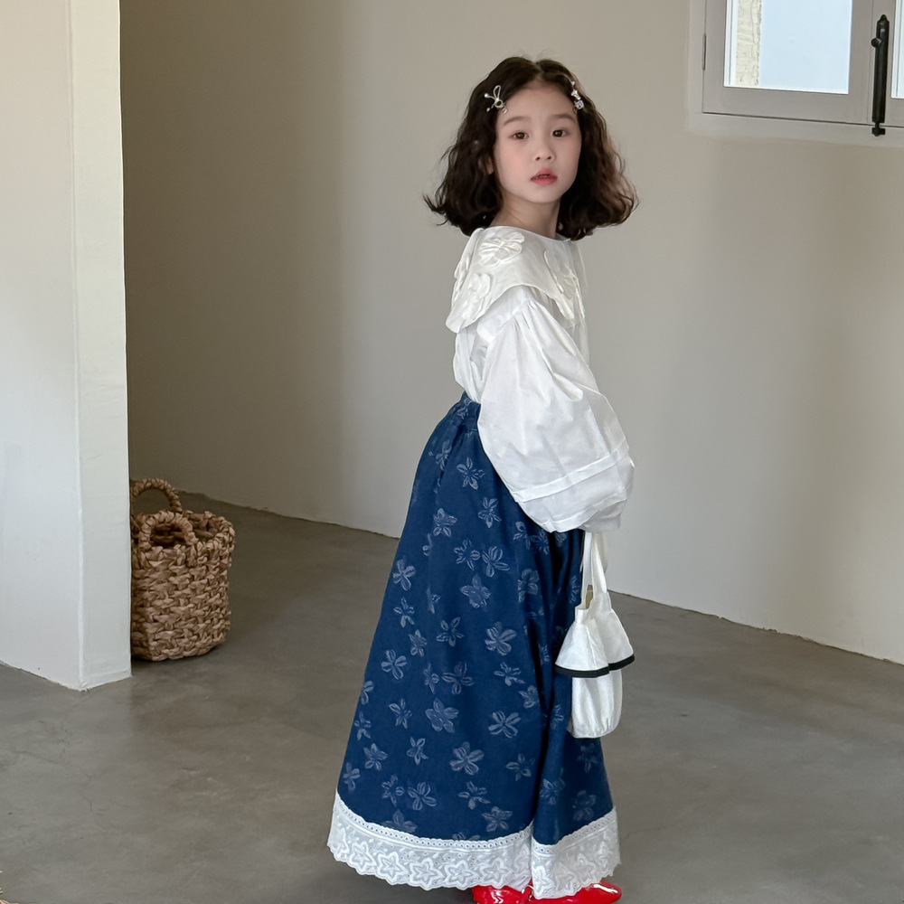 어린이 치마 2025 봄 소녀 한국식 전장 꽃 치마 어린이 캐주얼 느슨한 레이스 데님 치마스토어 가기
