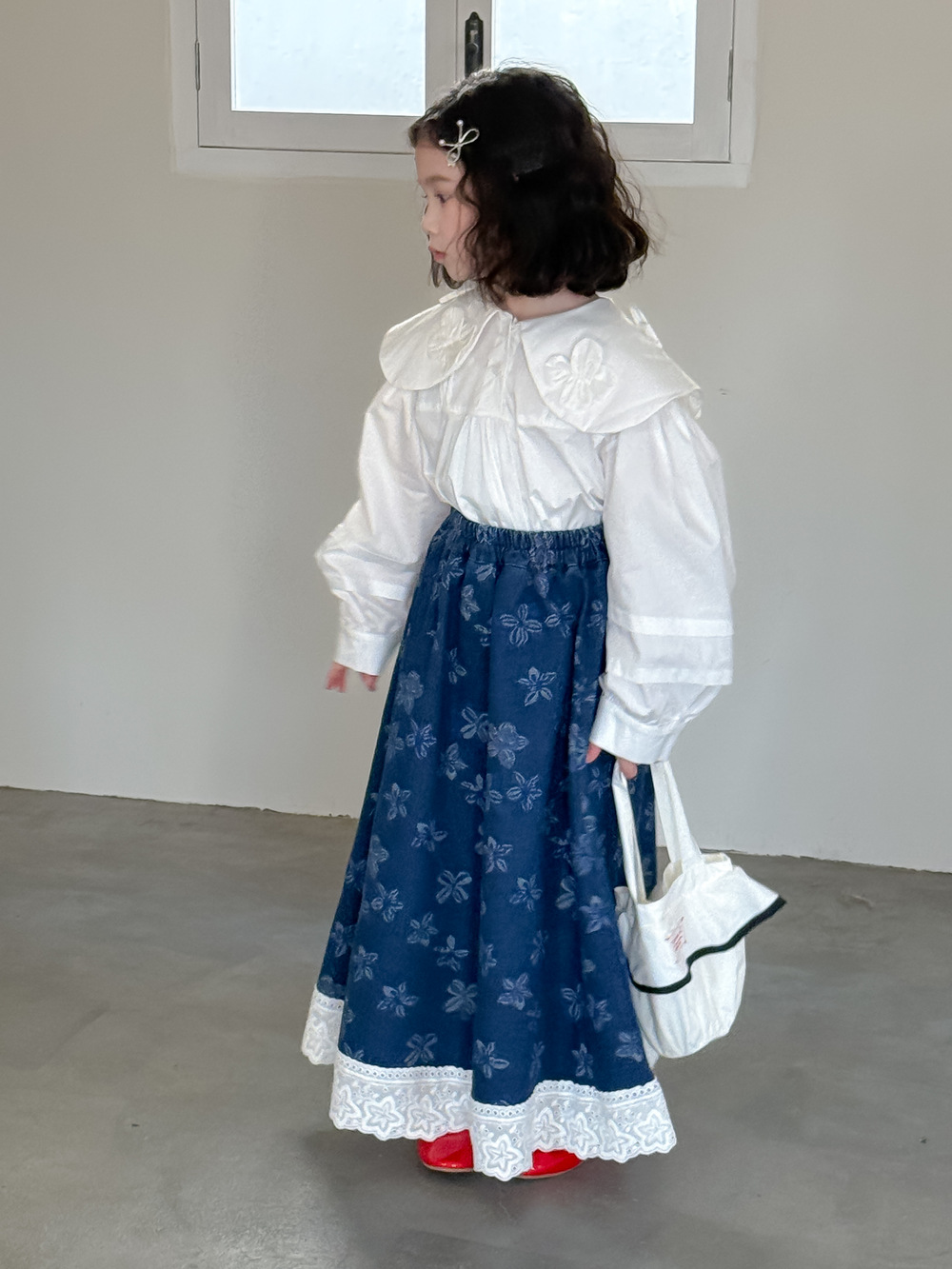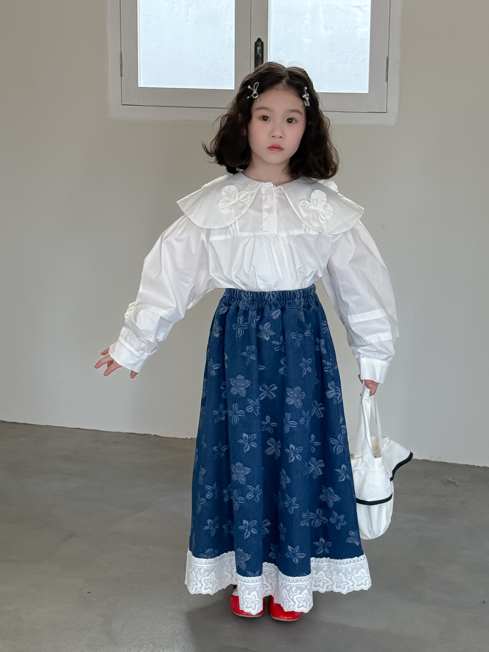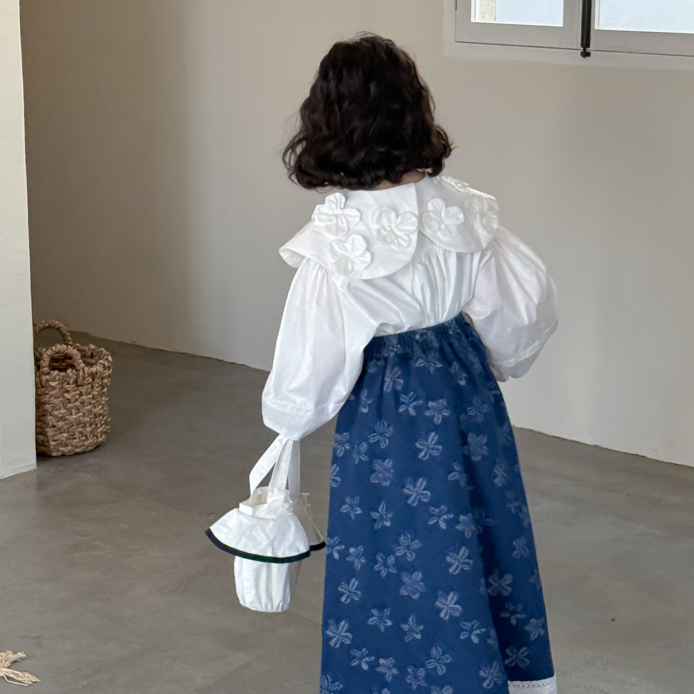 어린이 치마 2025 봄 소녀 한국식 전장 꽃 치마 어린이 캐주얼 느슨한 레이스 데님 치마스토어 가기