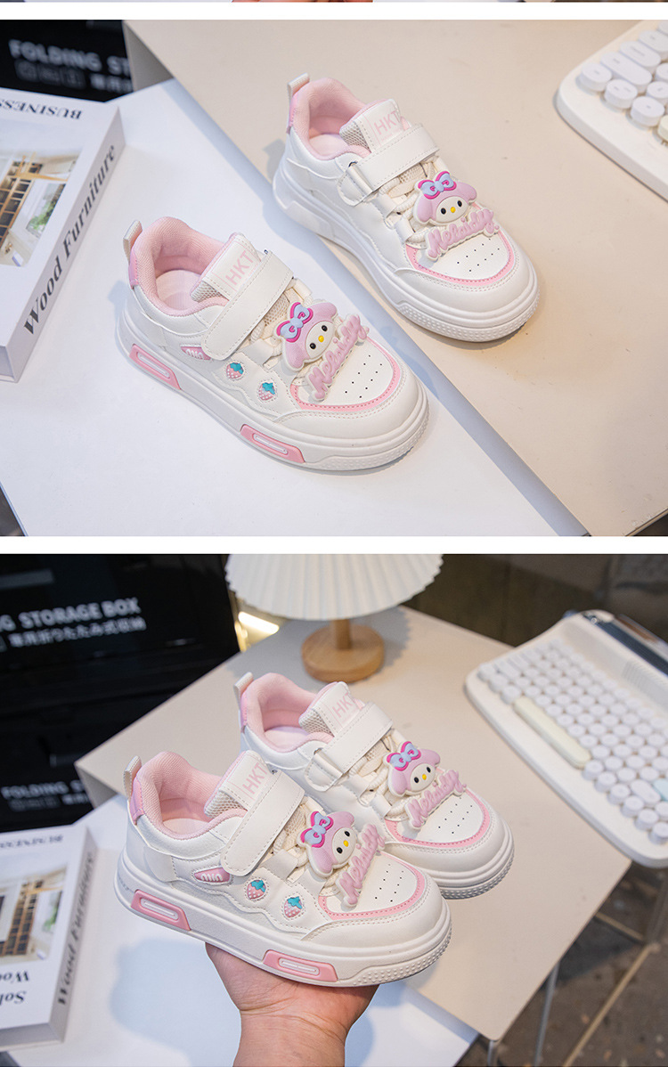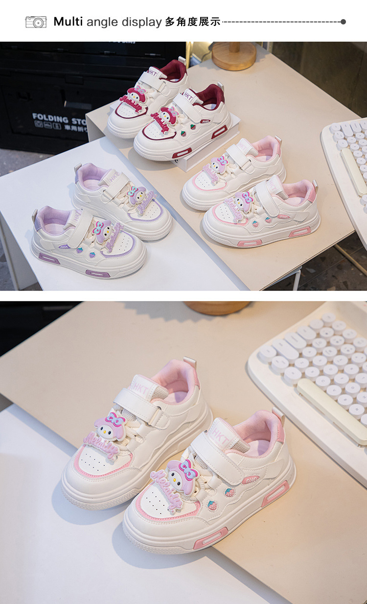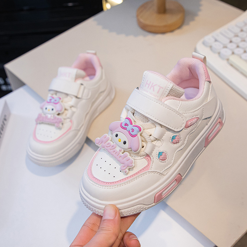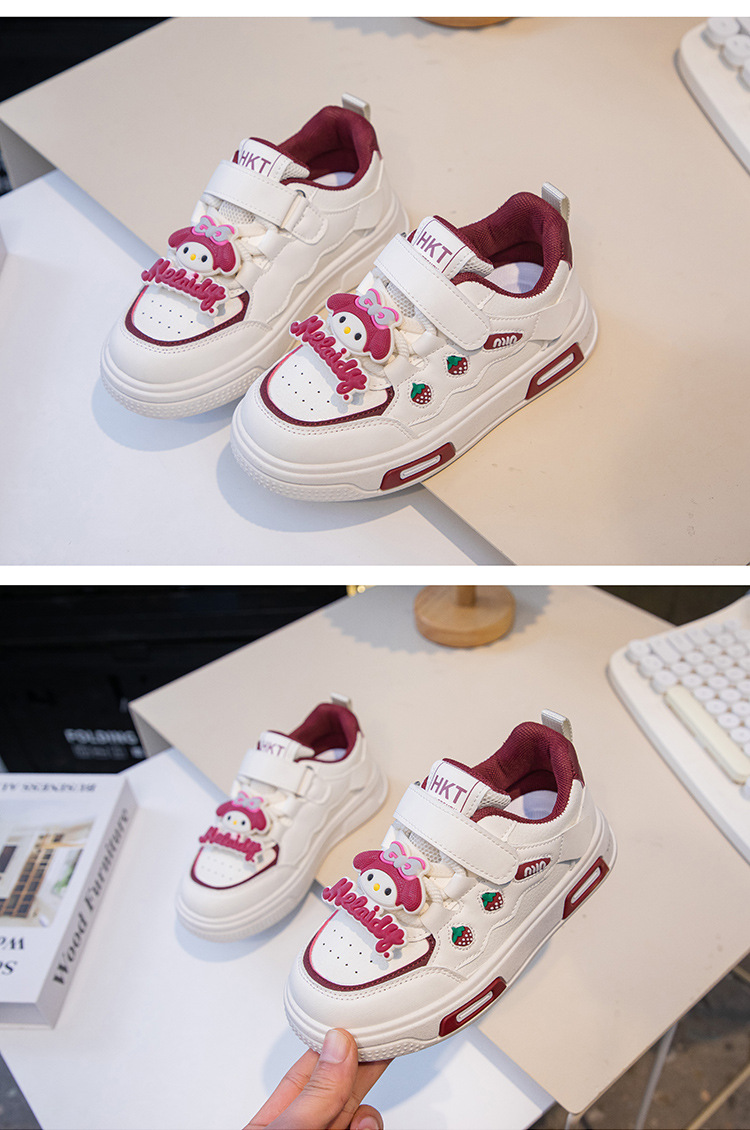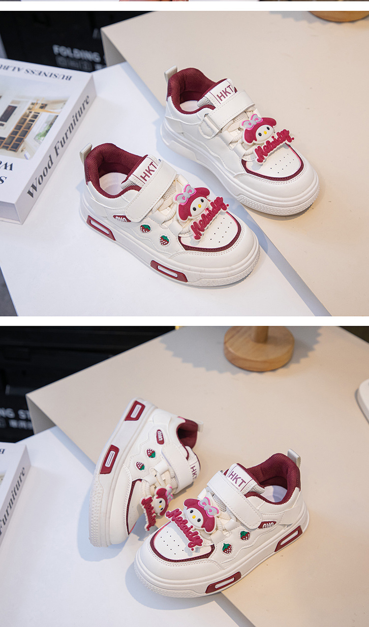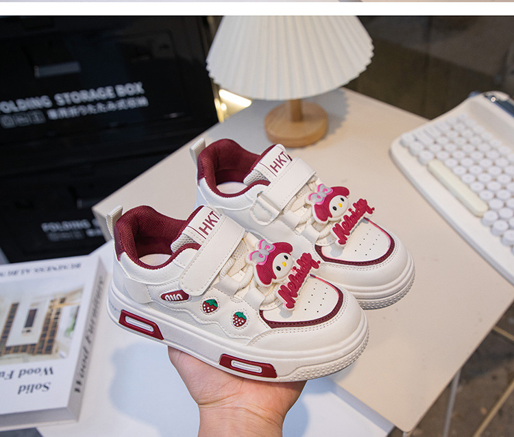 2025 봄 운동화 가죽 귀여운 흰색 신발 어린이 딸기 Meruti 미끄럼 방지 소프트 단독 보드 신발스토어 가기