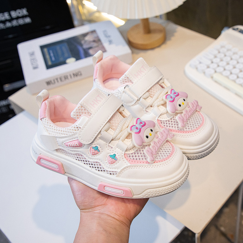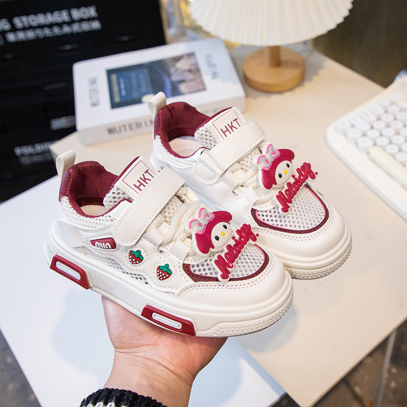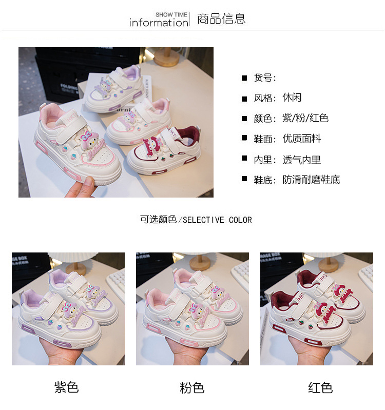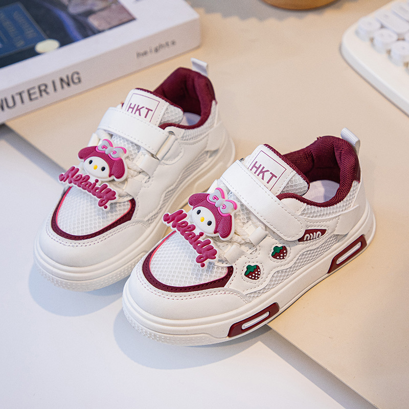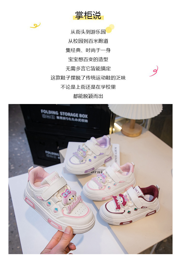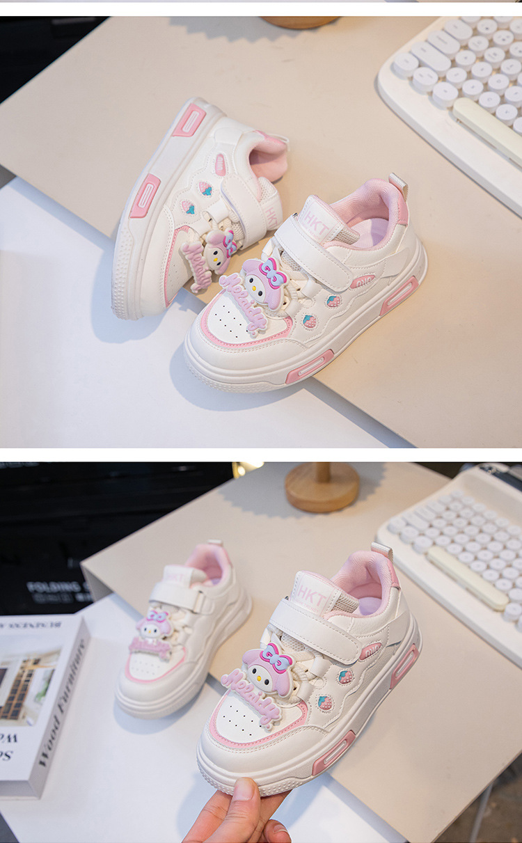 2025 봄 운동화 가죽 귀여운 흰색 신발 어린이 딸기 Meruti 미끄럼 방지 소프트 단독 보드 신발스토어 가기