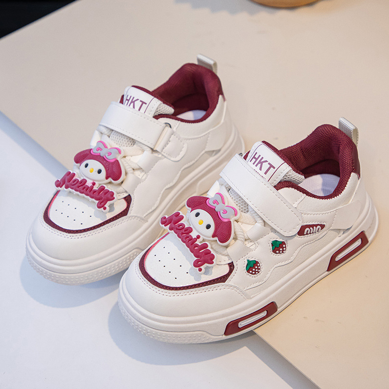 2025 봄 운동화 가죽 귀여운 흰색 신발 어린이 딸기 Meruti 미끄럼 방지 소프트 단독 보드 신발