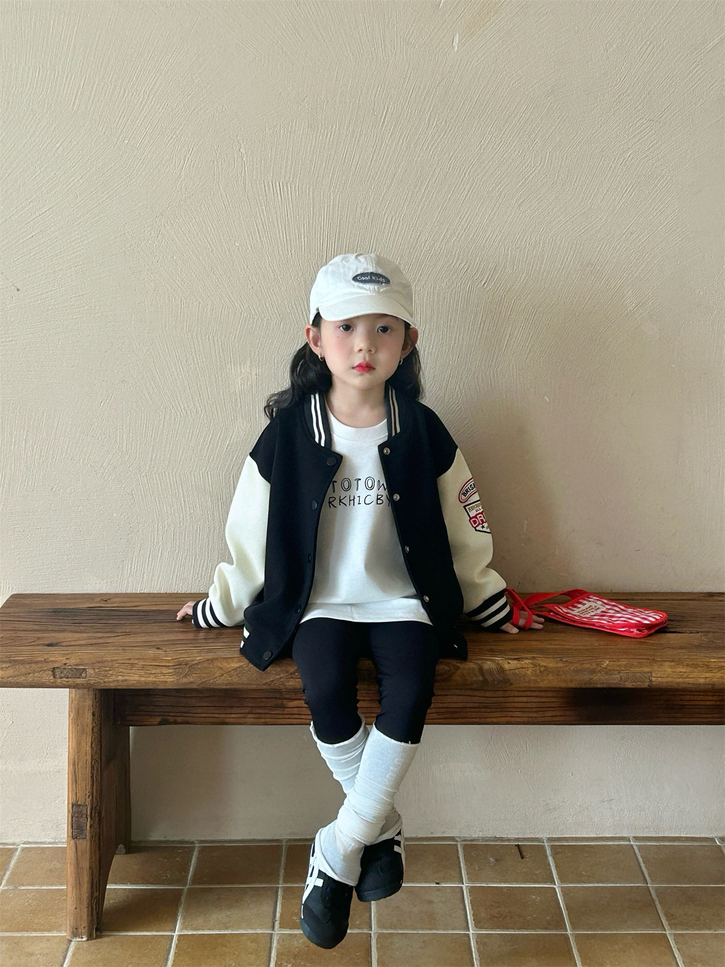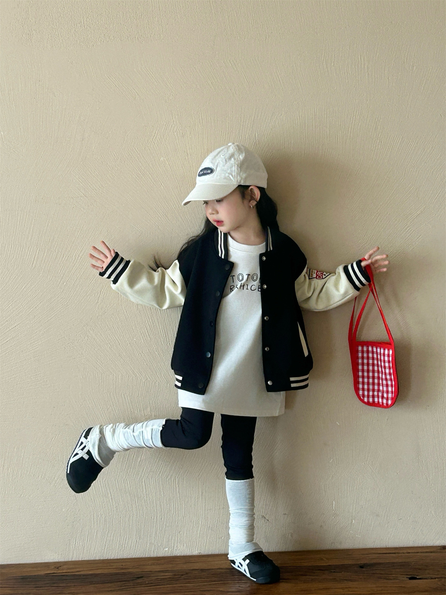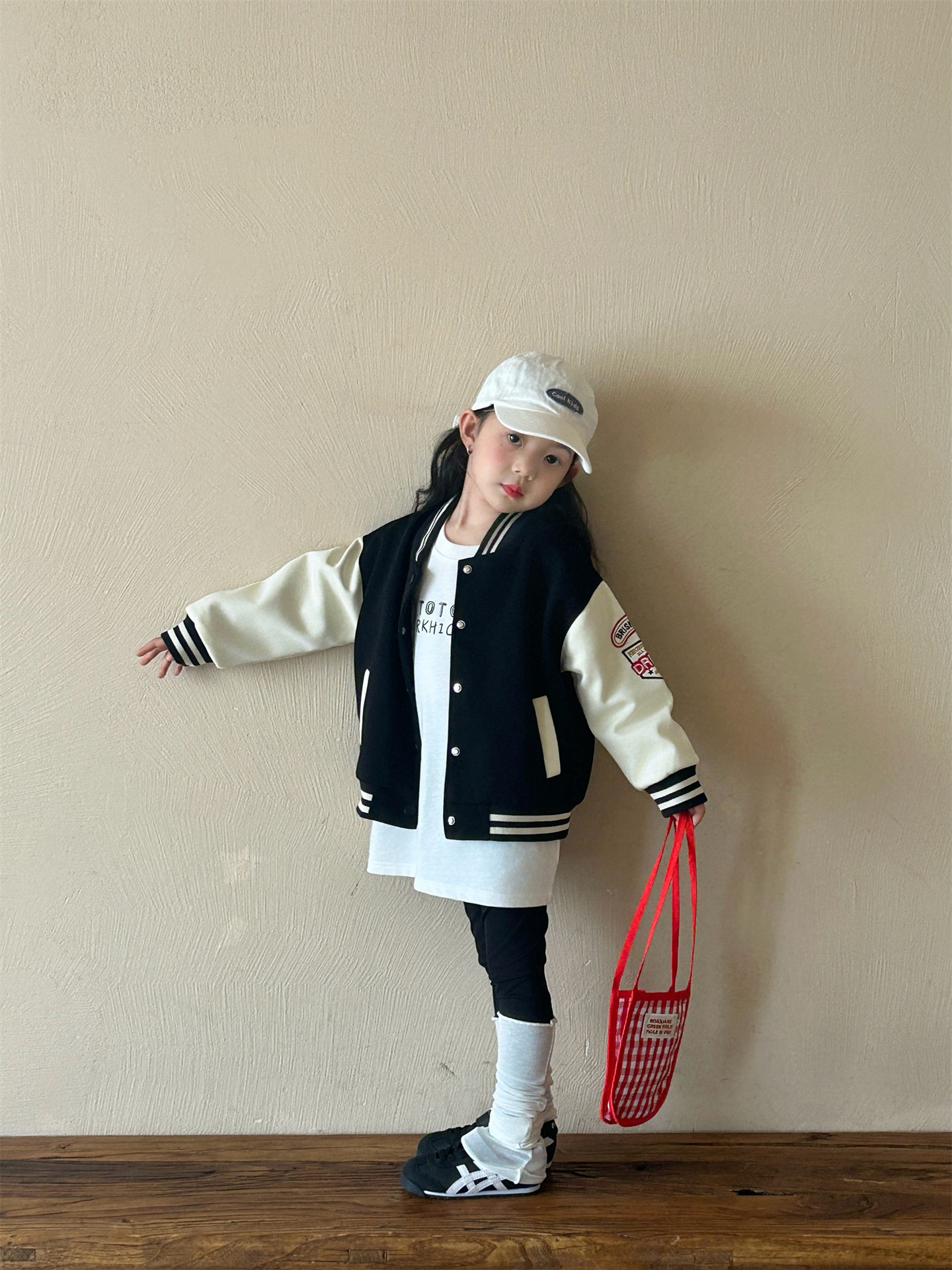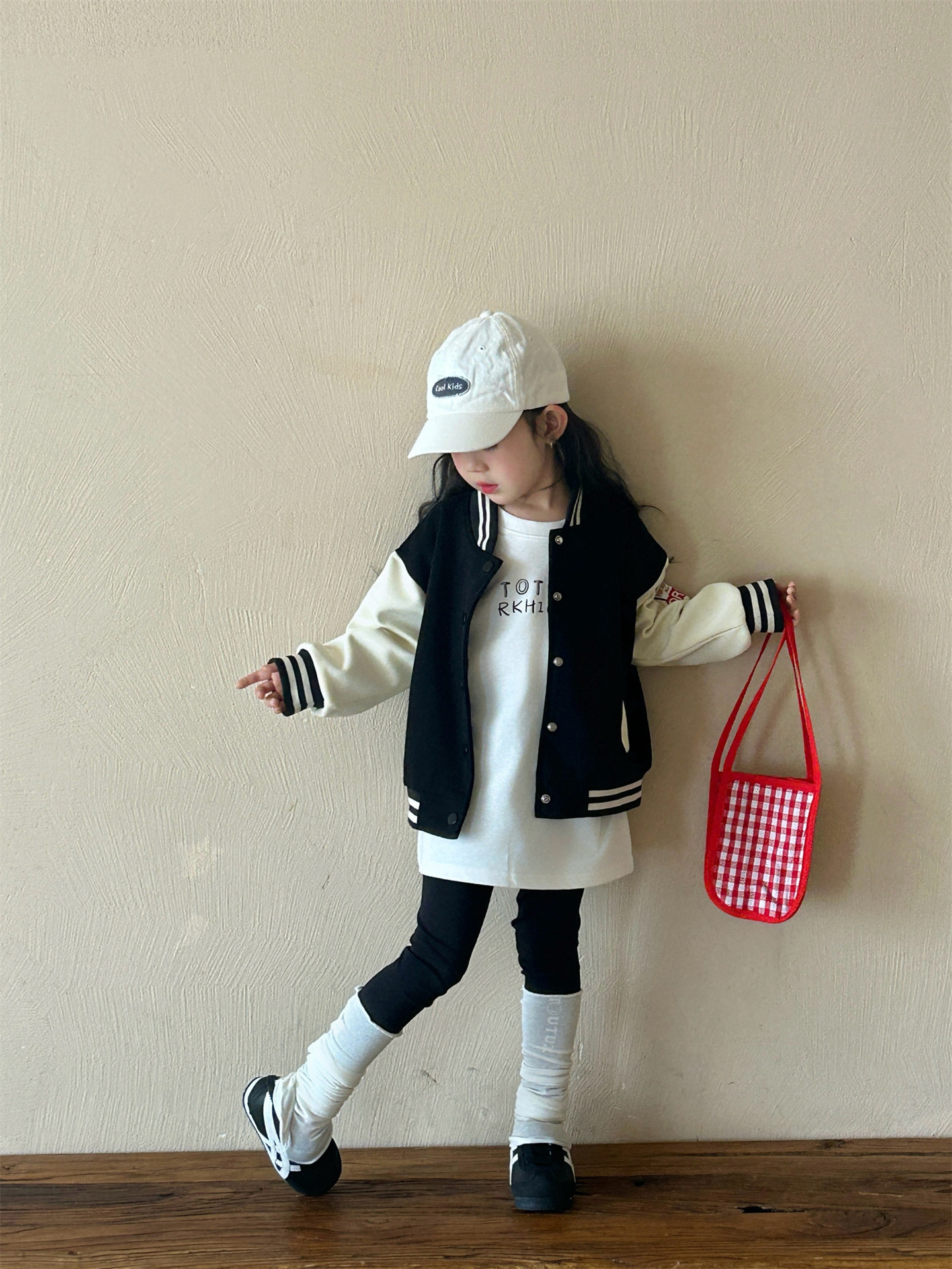2025 봄 새 소녀 서양식 자수 야구 유니폼 긴 문자 긴 소매 티셔츠 요가 바지 3 피스 세트