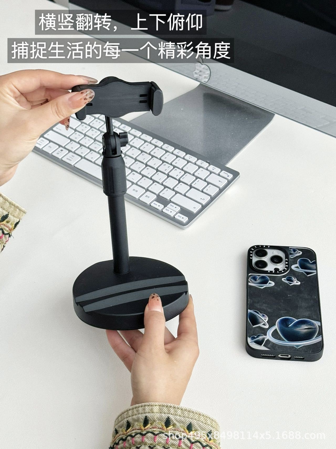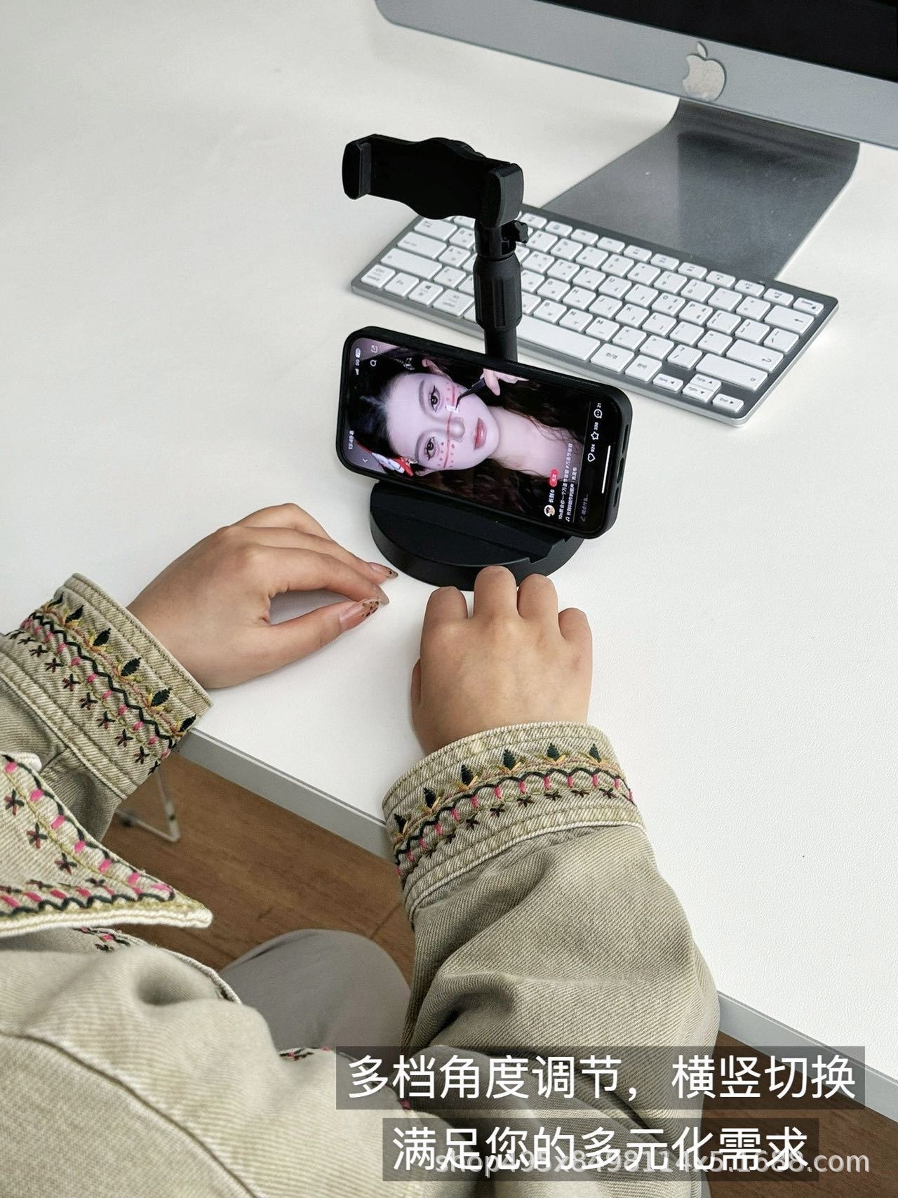 게으른 비디오 다기능 회전 스마트 폰 브래킷을위한 듀얼 포지션 데스크탑 휴대 전화 태블릿 라이브 방송 브래킷스토어 가기