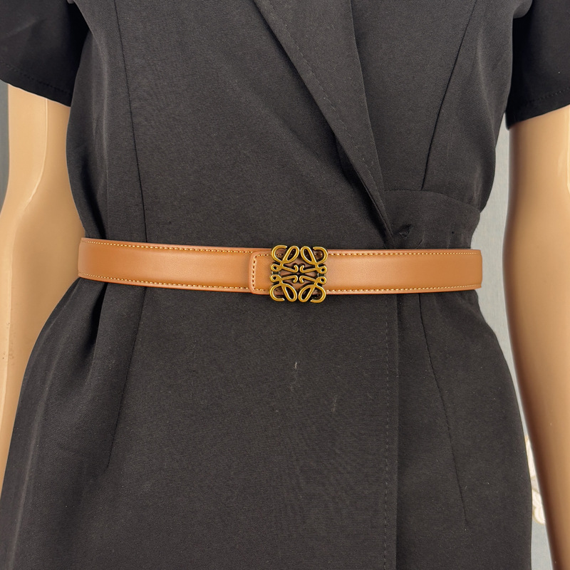 유럽과 미국의 새로운 벨트 여성의 고급 디자인 센스 틈새 장식 활 진짜 Cowhide Hollow-out 알파벳 버클 벨트스토어 가기