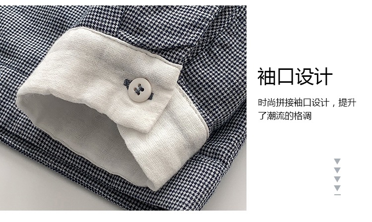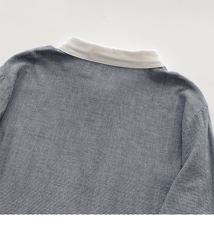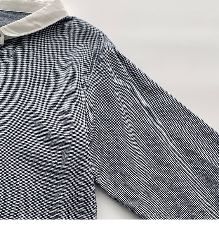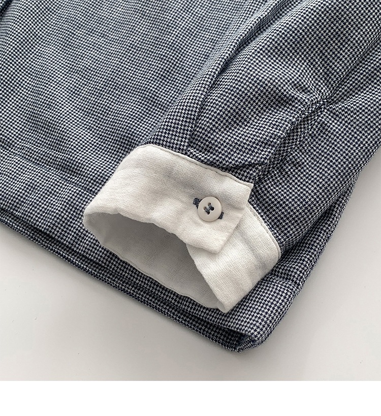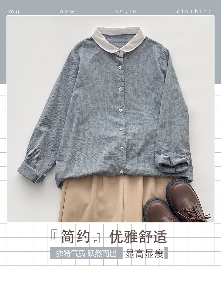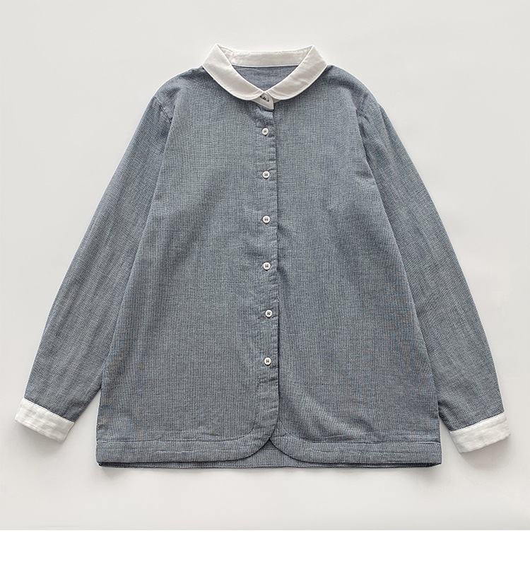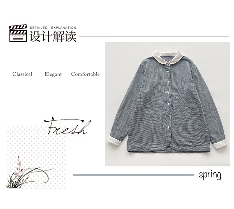 2025 리얼 샷 재고 스티칭 칼라 코튼 격자 셔츠 봄 새로운 예술적 더블 레이어 원사 화이트 칼라 셔츠 여성 의류스토어 가기