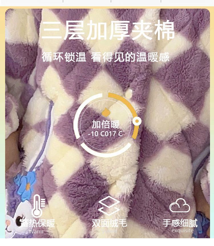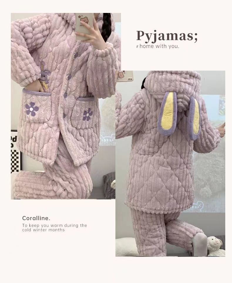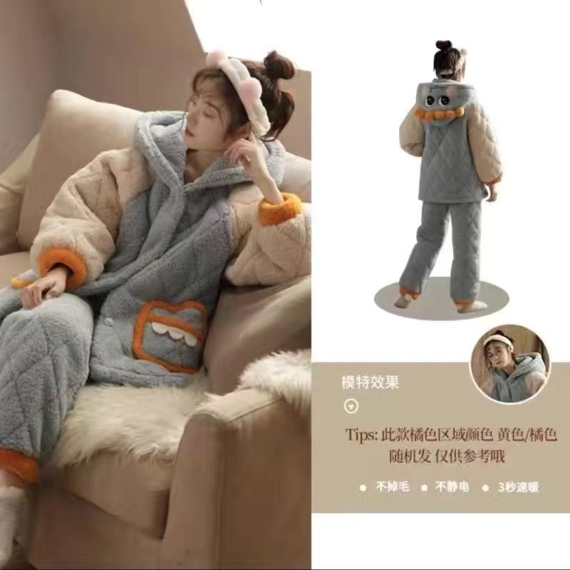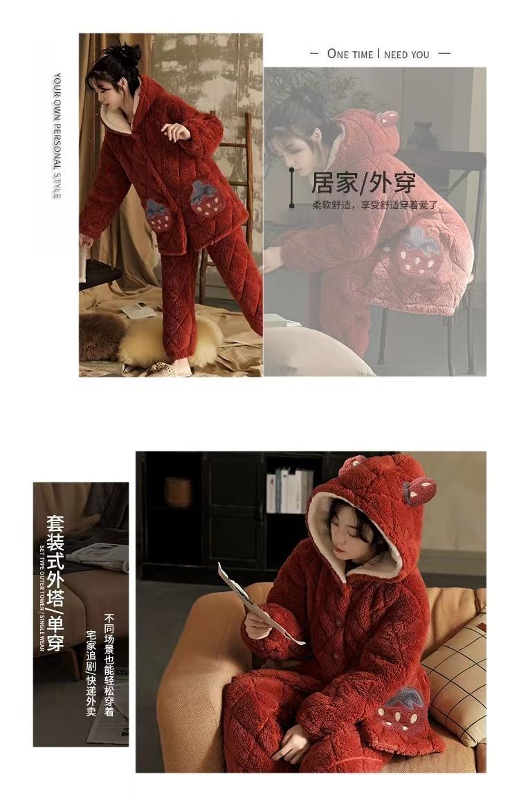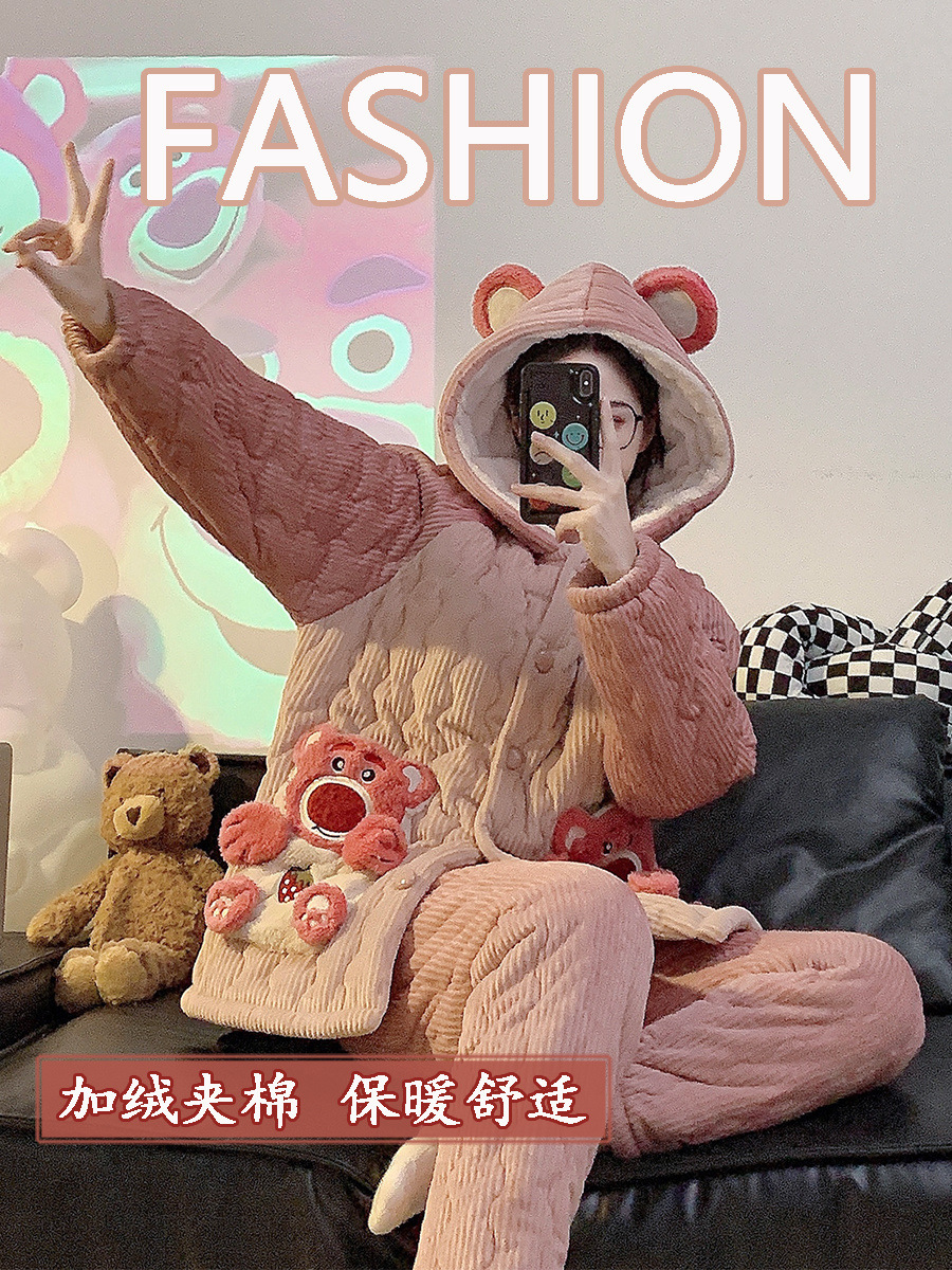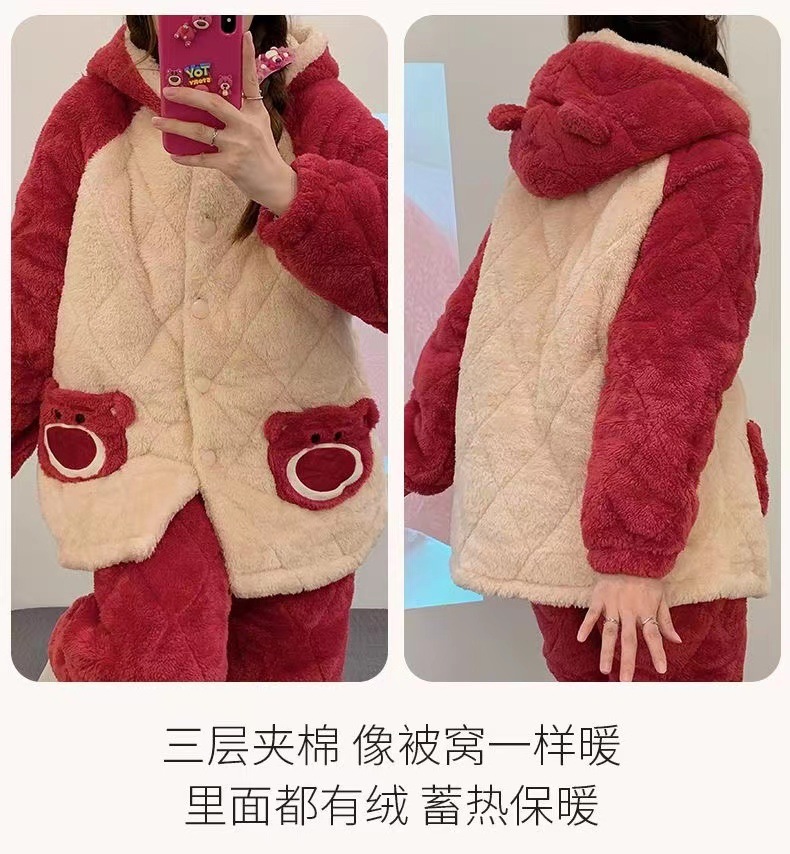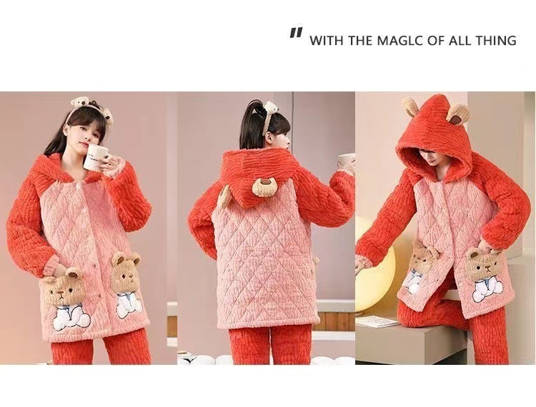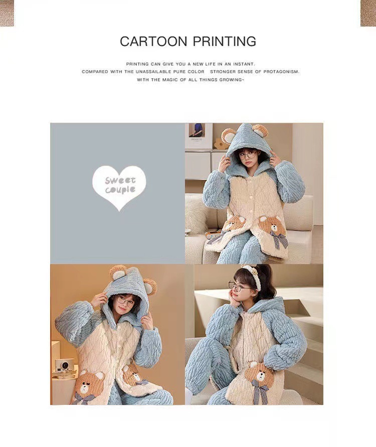 잠옷 여성의 겨울 산호 양털 3 층 퀼트 귀여운 만화 기모 두꺼운 플란넬 잠옷 홈 세트스토어 가기