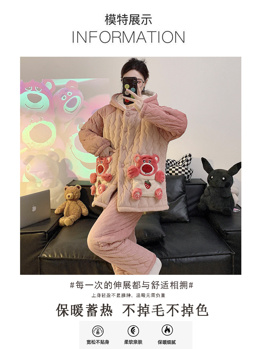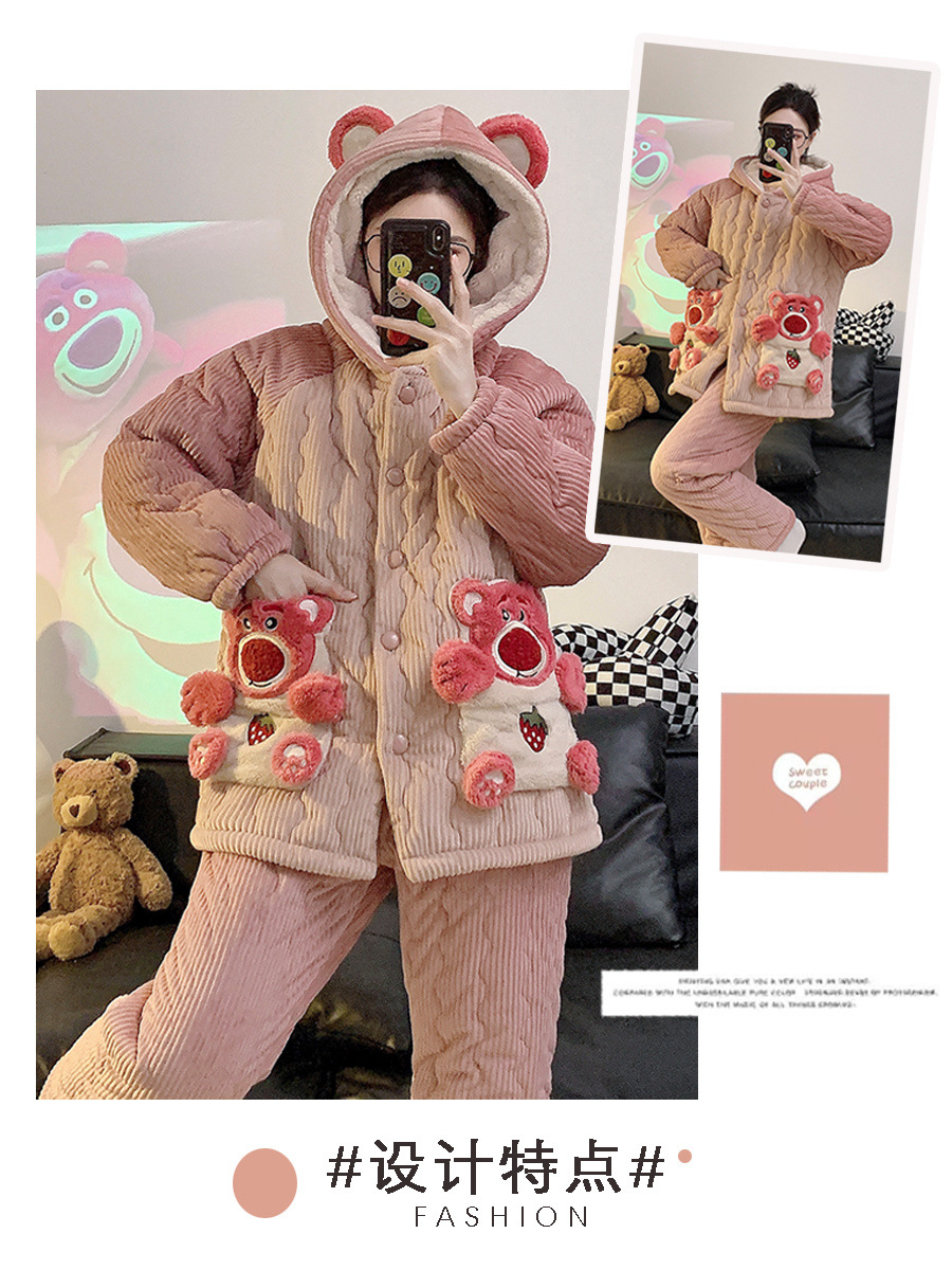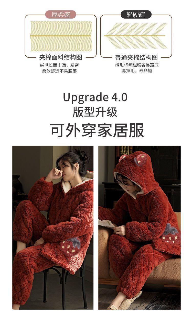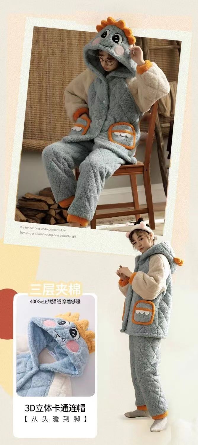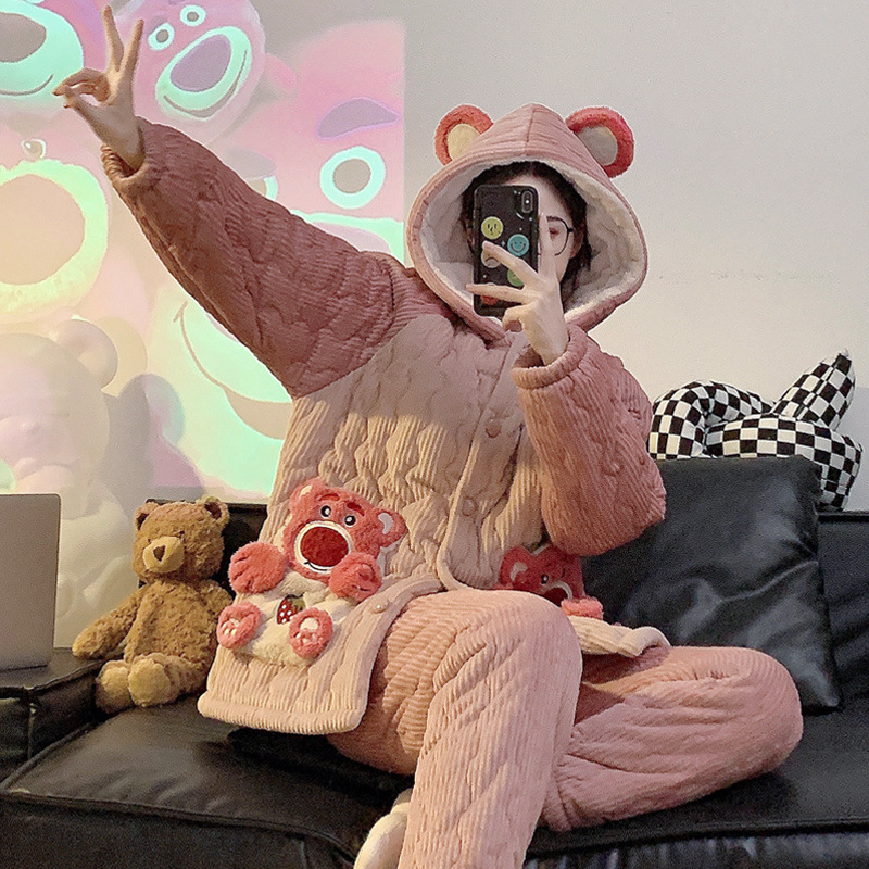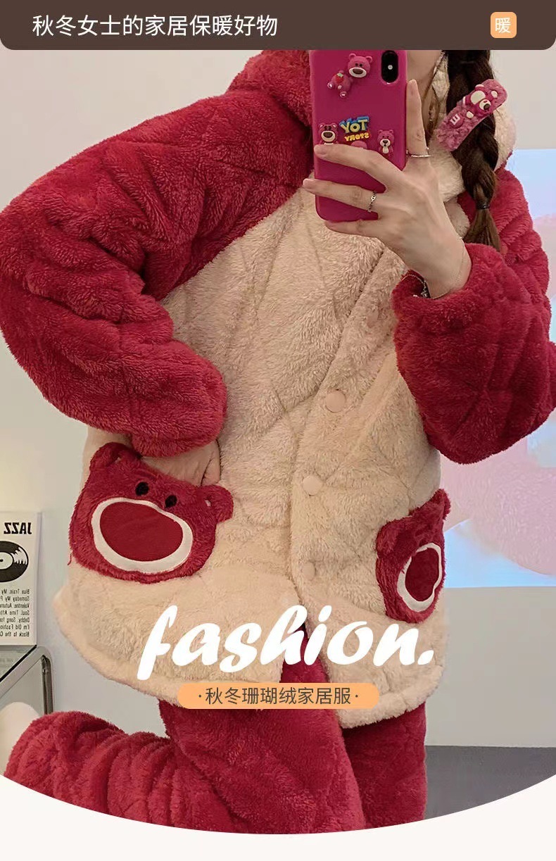 잠옷 여성의 겨울 산호 양털 3 층 퀼트 귀여운 만화 기모 두꺼운 플란넬 잠옷 홈 세트스토어 가기