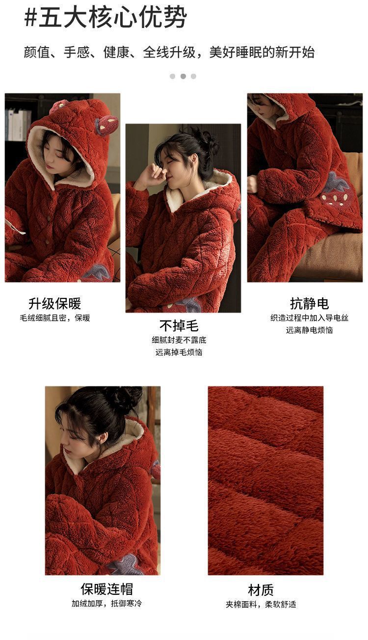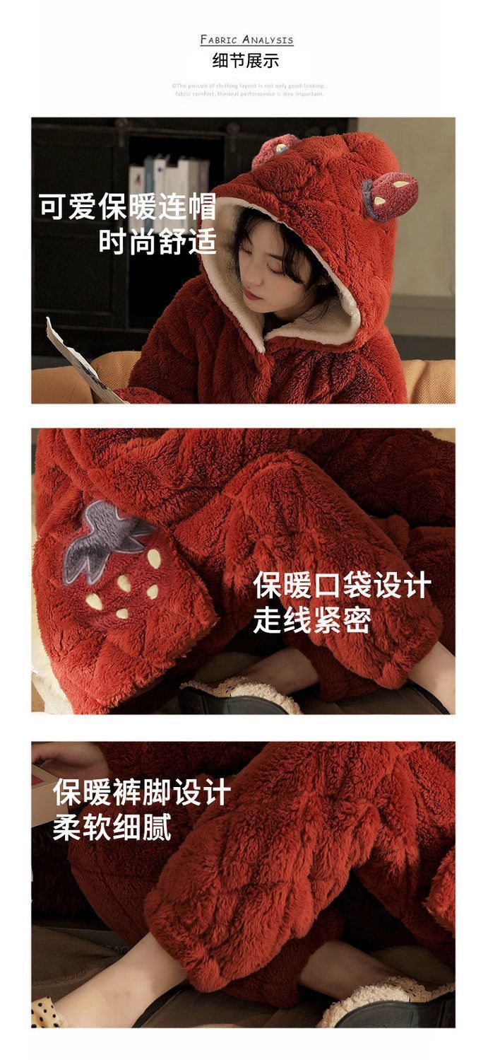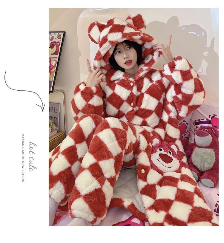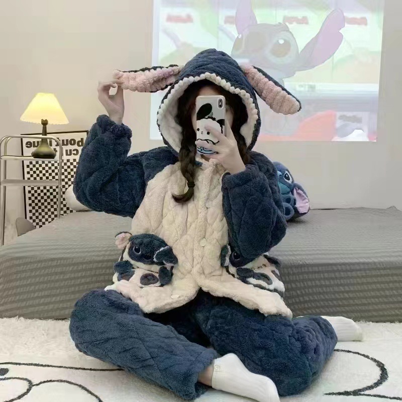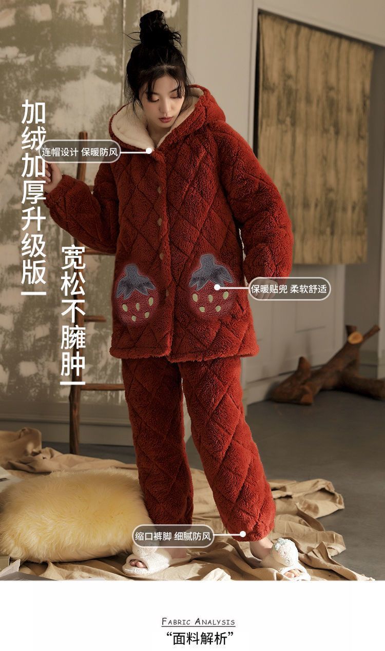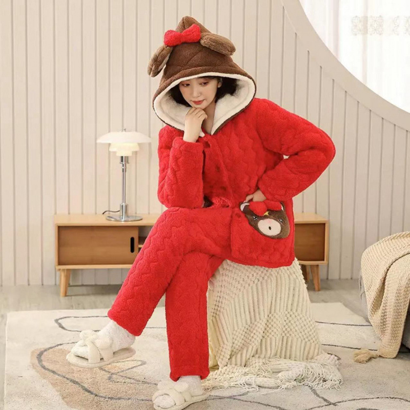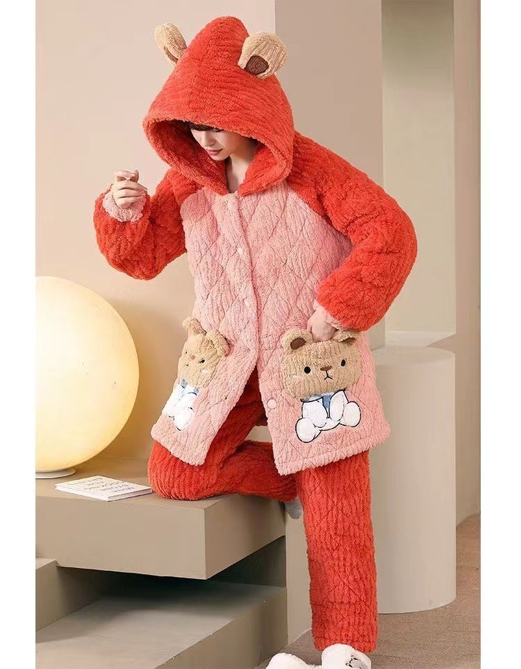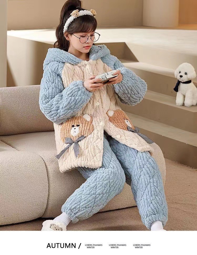 잠옷 여성의 겨울 산호 양털 3 층 퀼트 귀여운 만화 기모 두꺼운 플란넬 잠옷 홈 세트스토어 가기