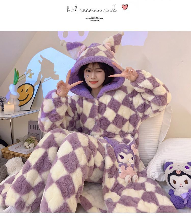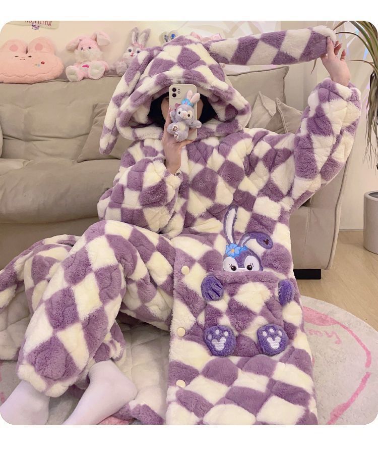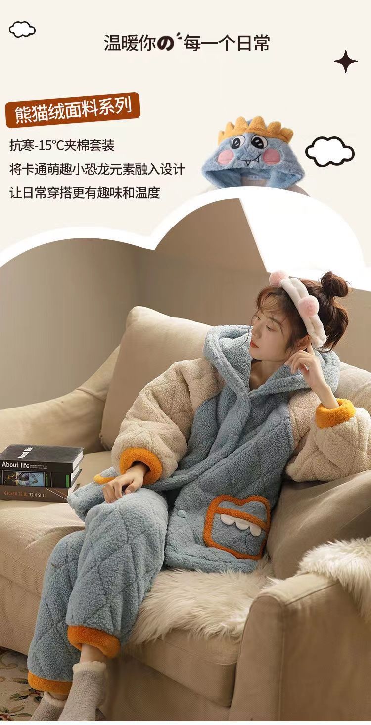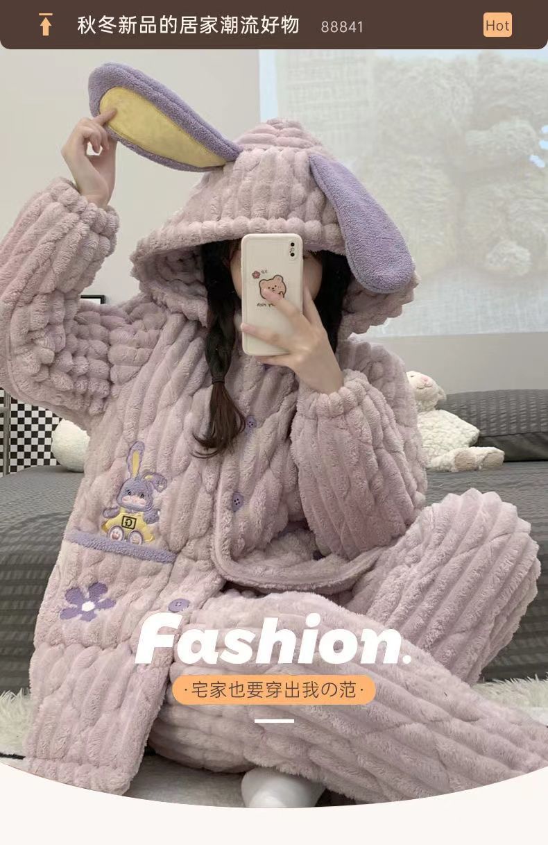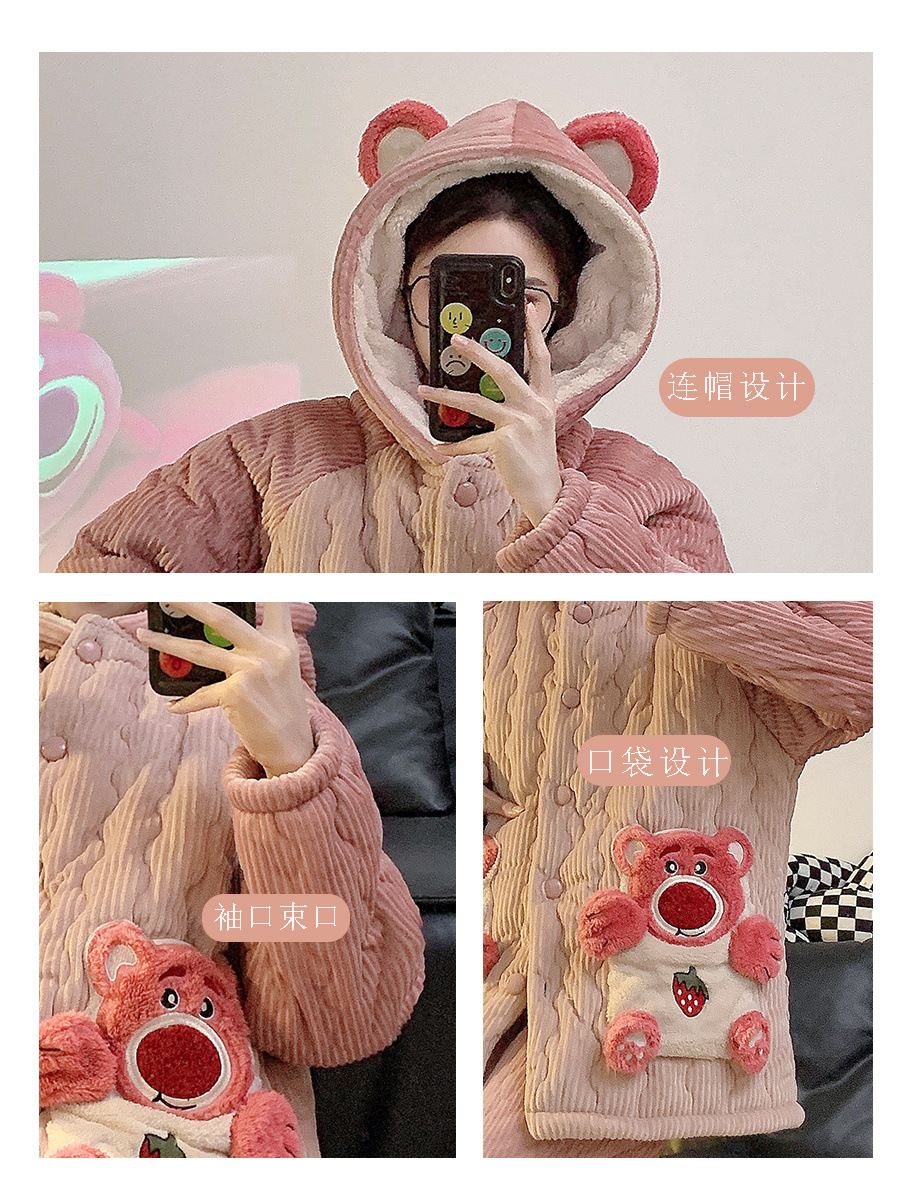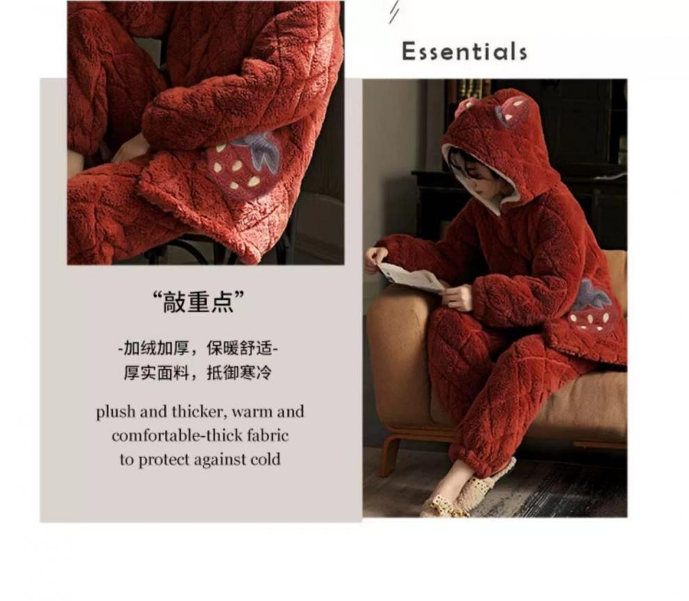 잠옷 여성의 겨울 산호 양털 3 층 퀼트 귀여운 만화 기모 두꺼운 플란넬 잠옷 홈 세트스토어 가기