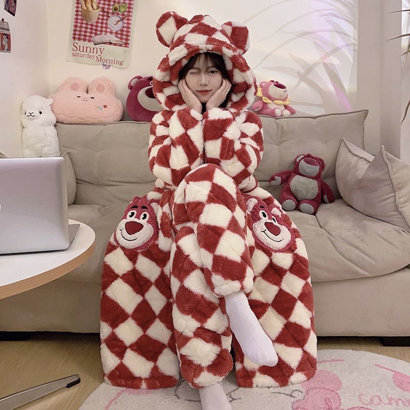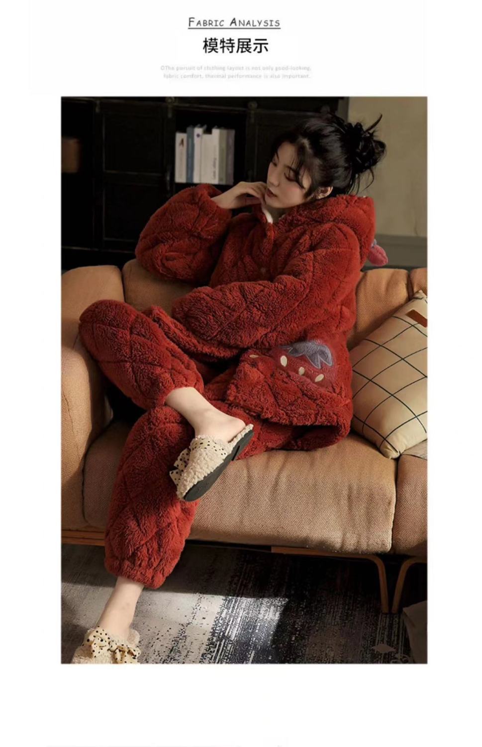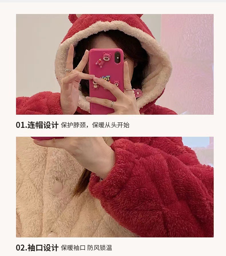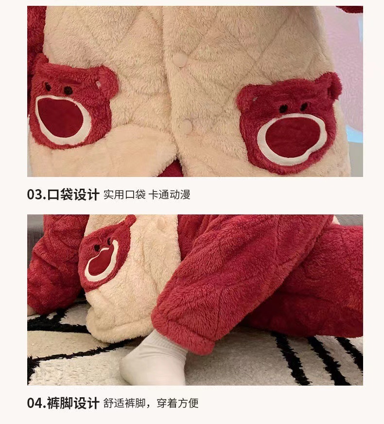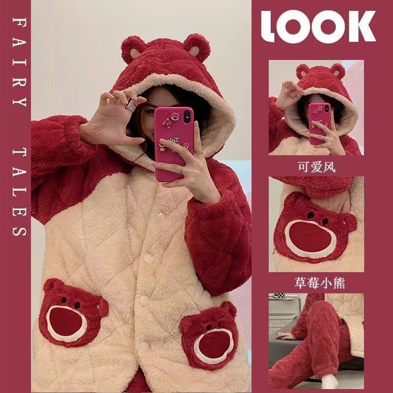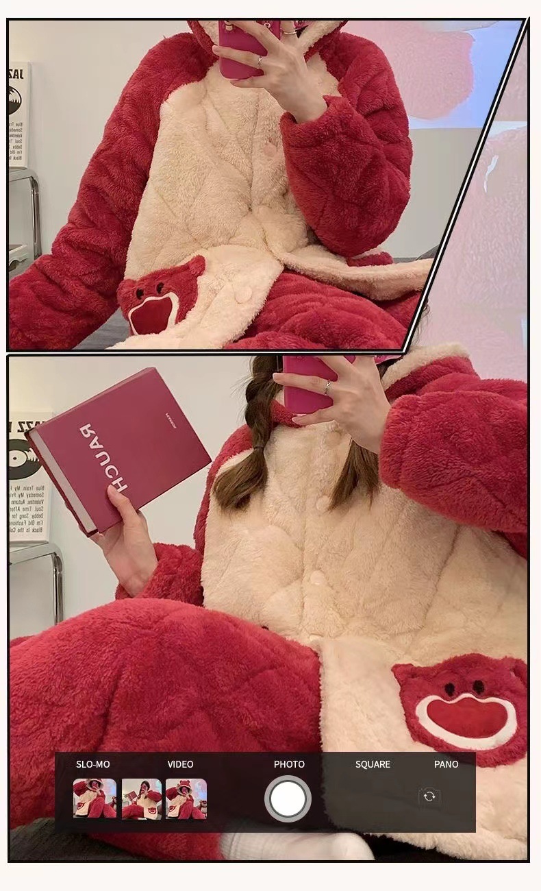 • 가운 + 면바지 빨간 딸기곰 두꺼운 양복