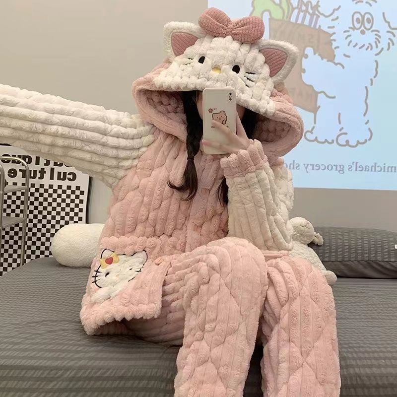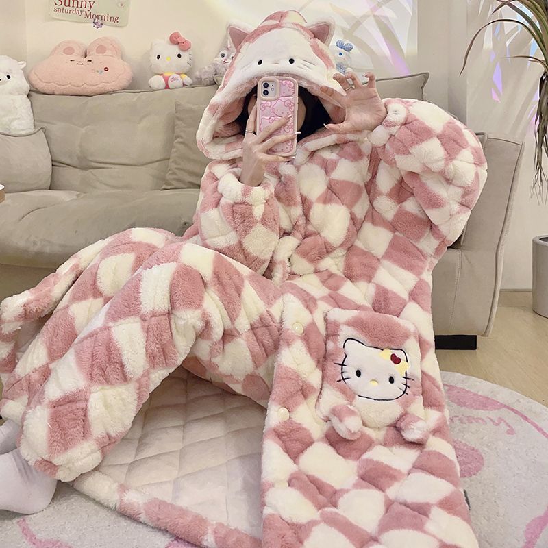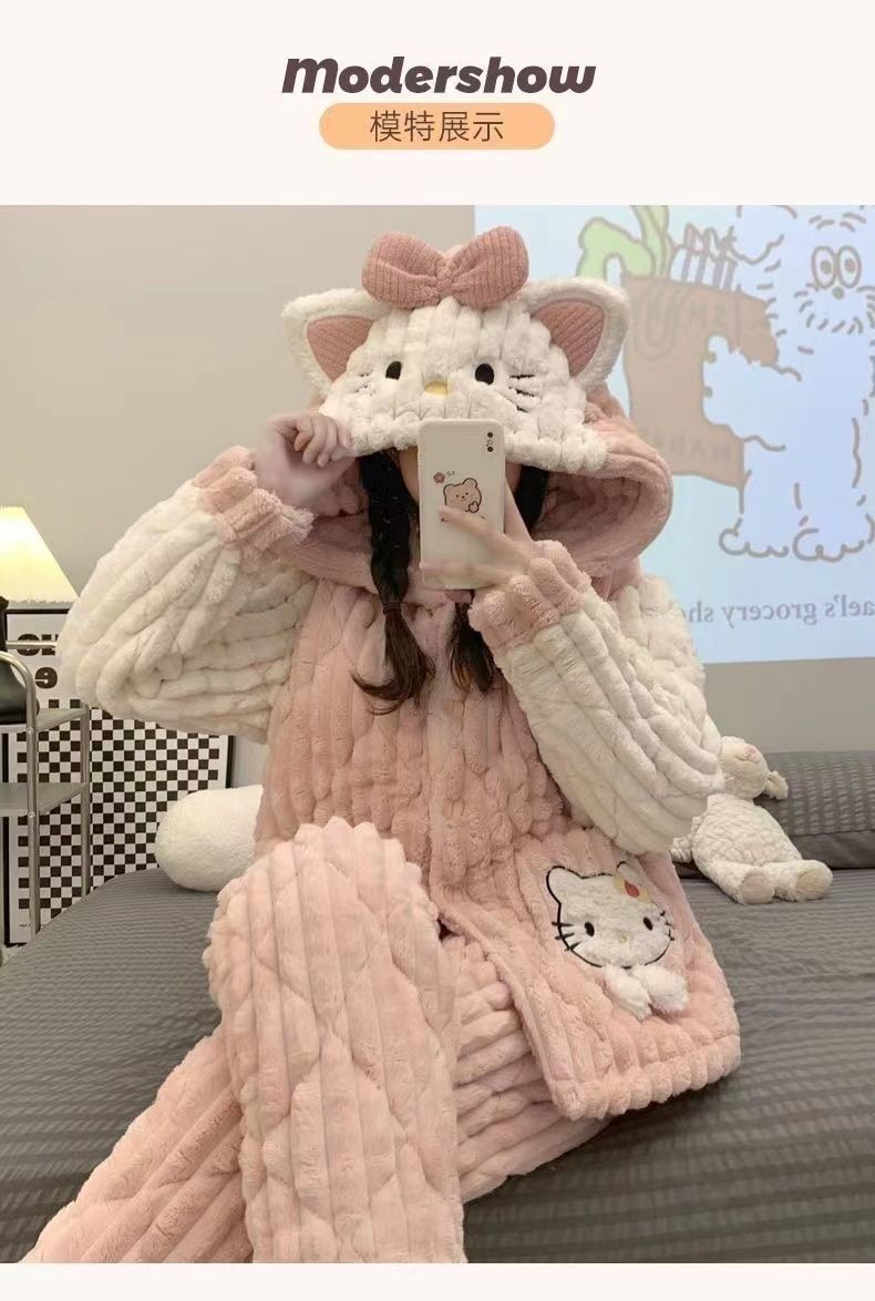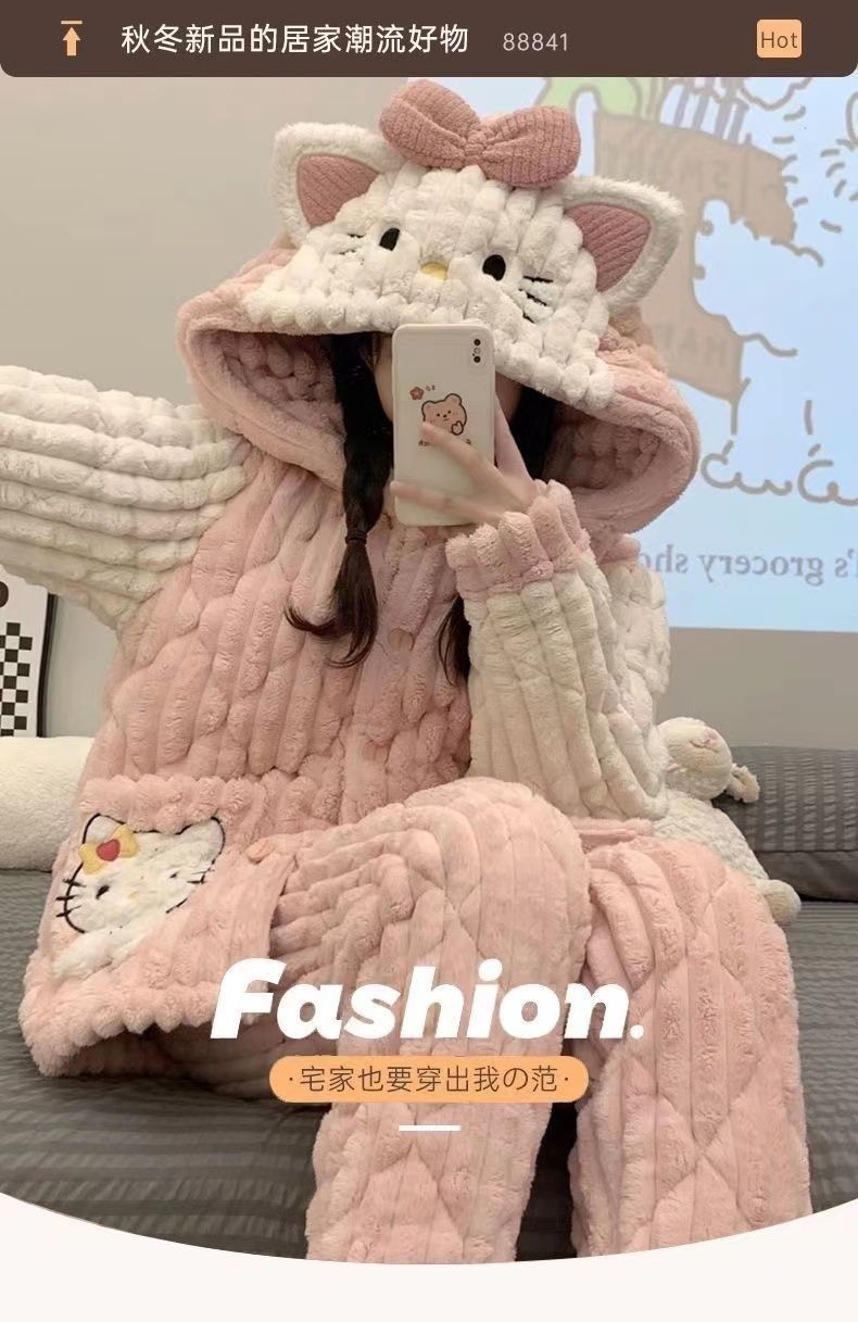 • 가운 + 면바지 핑크 KT 고양이 두꺼운 양복