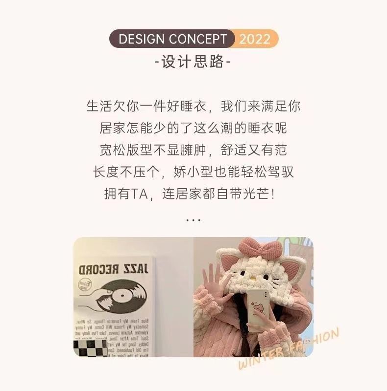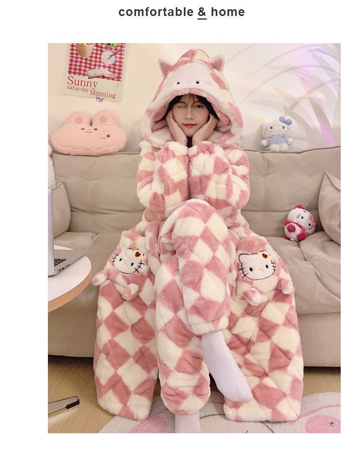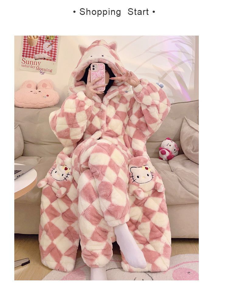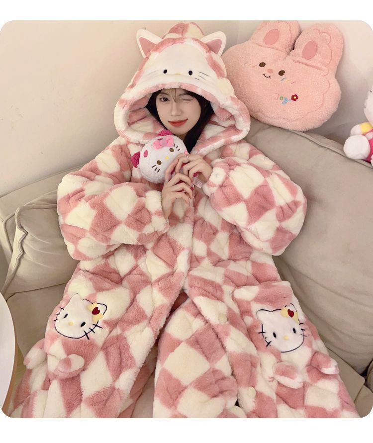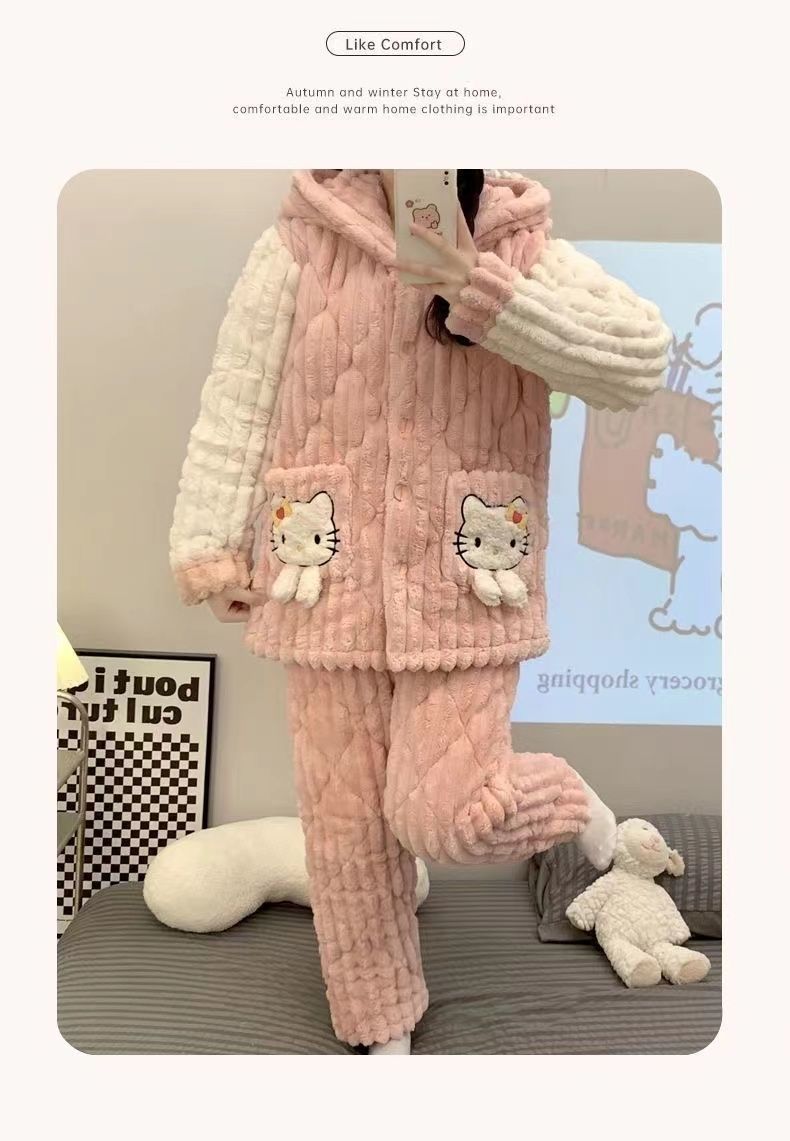 • 가운 + 면바지 핑크 KT 고양이 두꺼운 양복